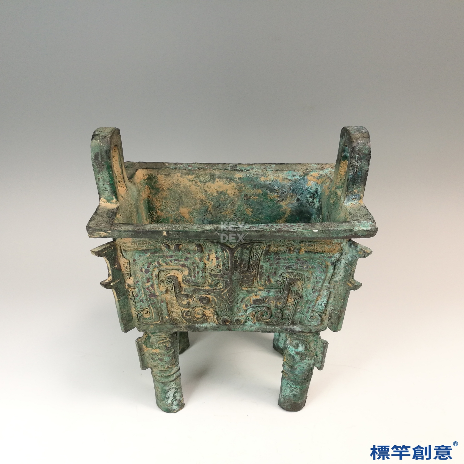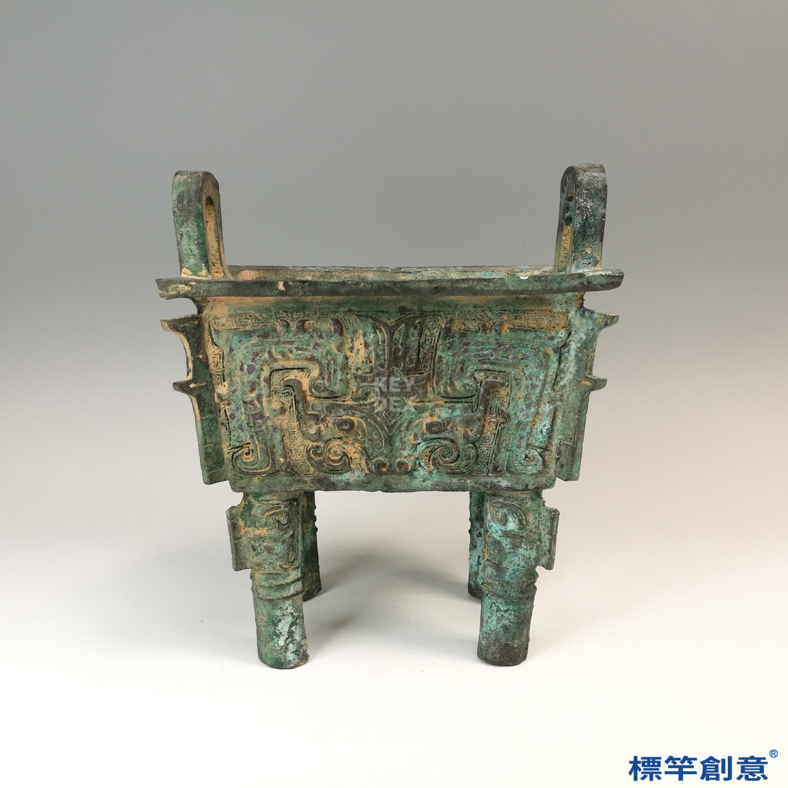 BB015 疑 商周時期青銅器饕餮雲雷紋雙耳四足方鼎