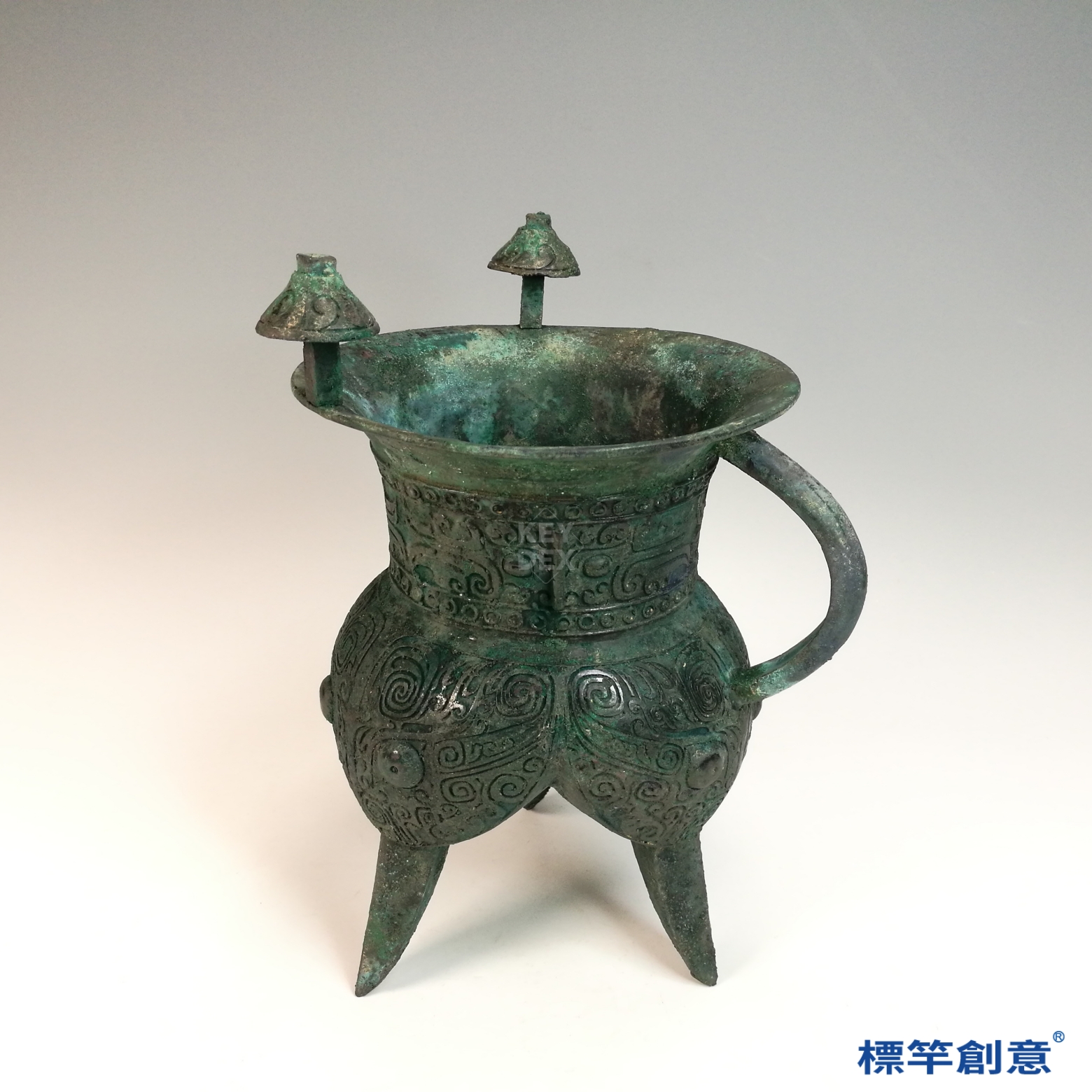 BB026 疑 商周時期青銅器饕餮夔龍紋帶把鬲式斝