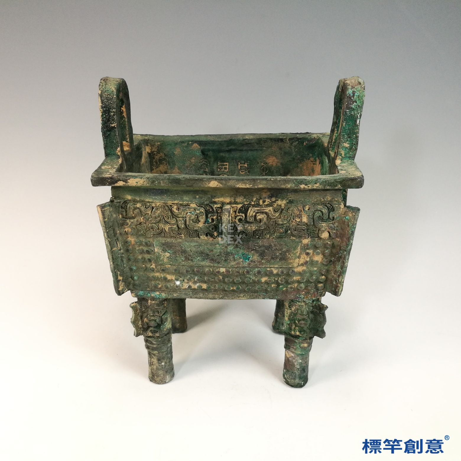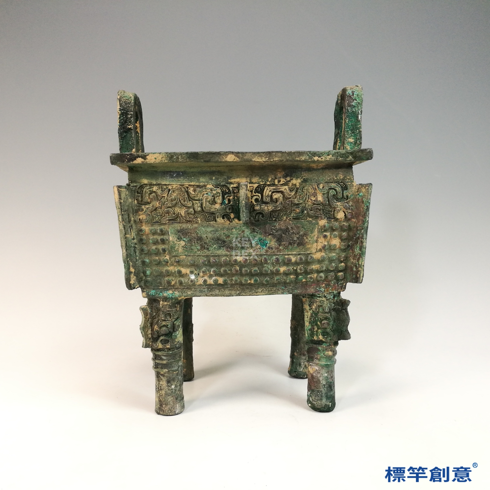 BB044 疑 商周時期青銅器饕餮夔龍紋雙耳長方四足鼎