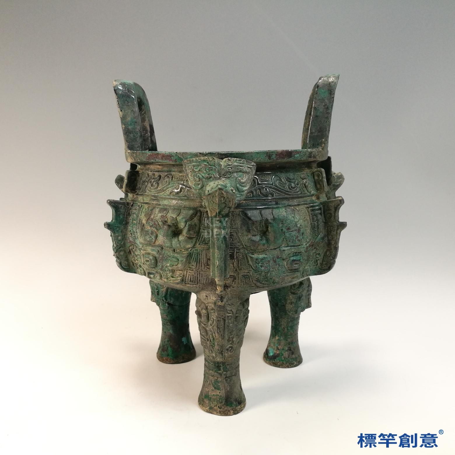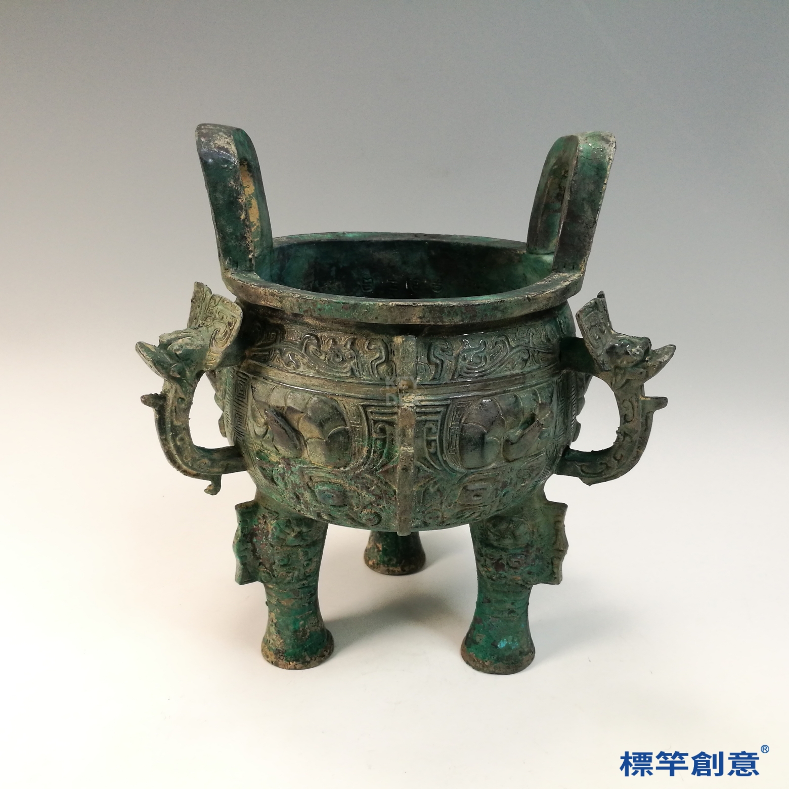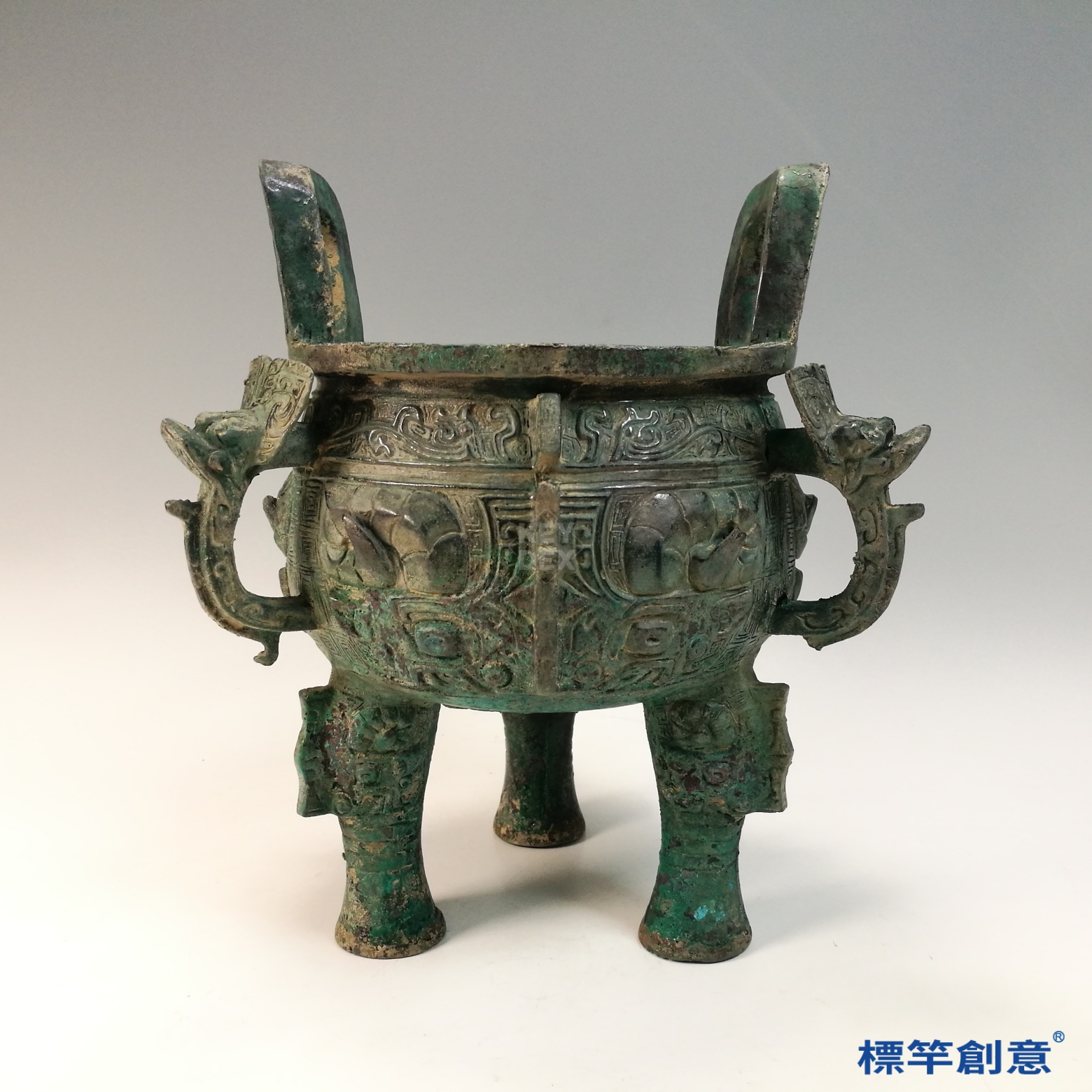 BB062 疑 商周時期青銅器饕餮夔龍紋三足獸環雙耳鼎