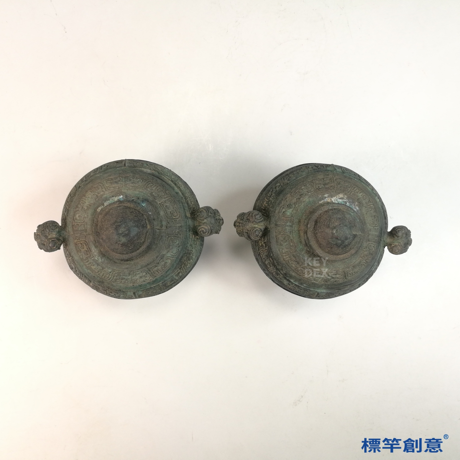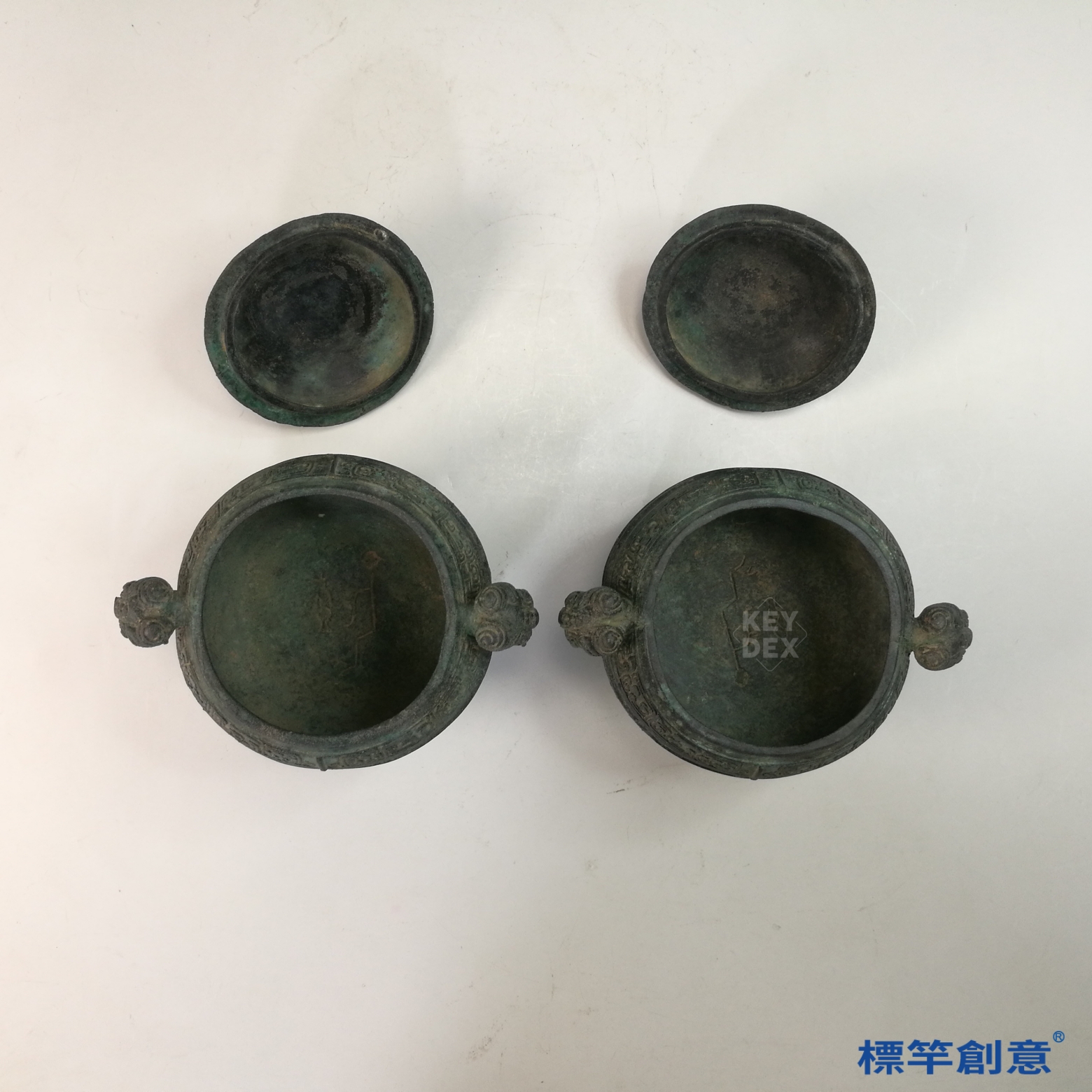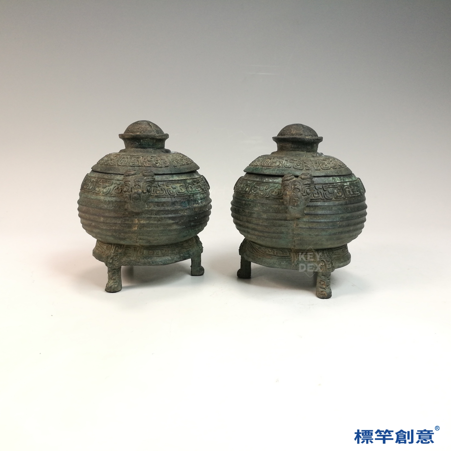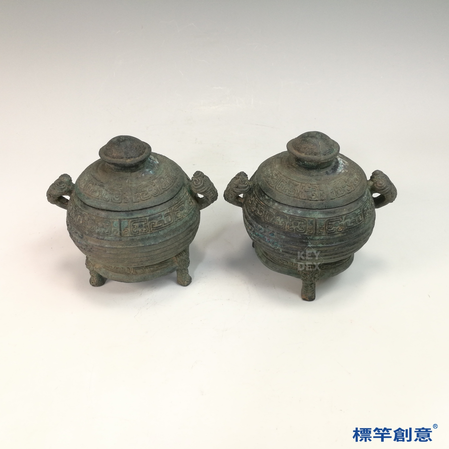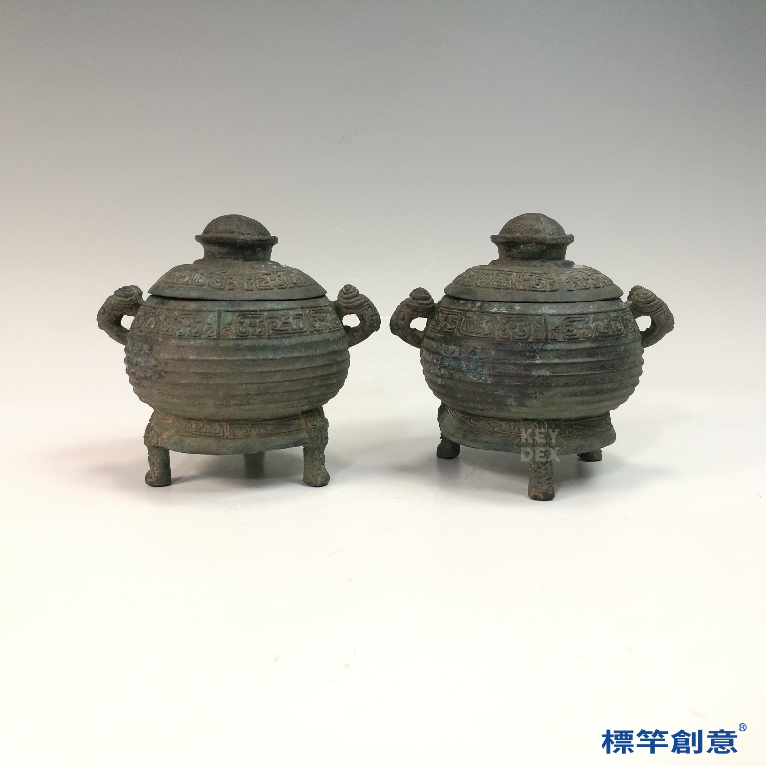 BB081 疑 商周時期青銅器夔龍紋三足帶蓋簋一對