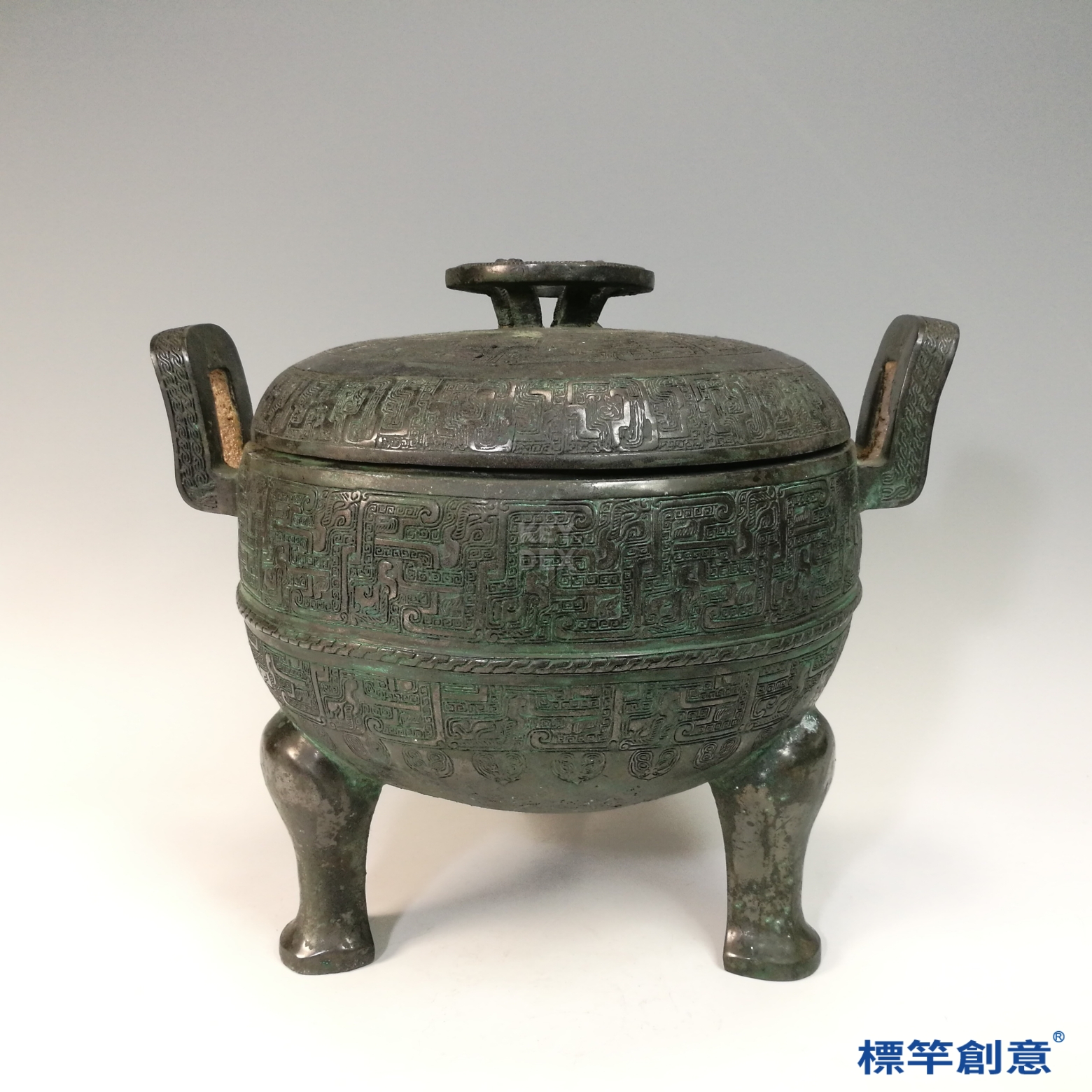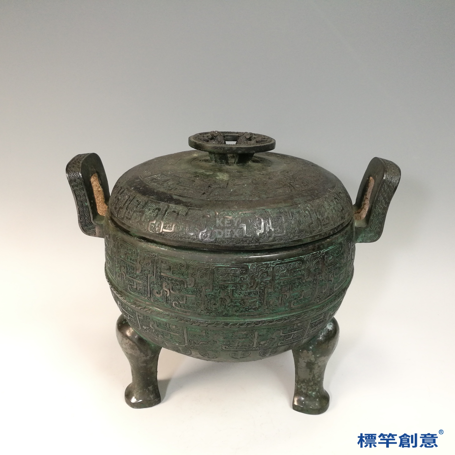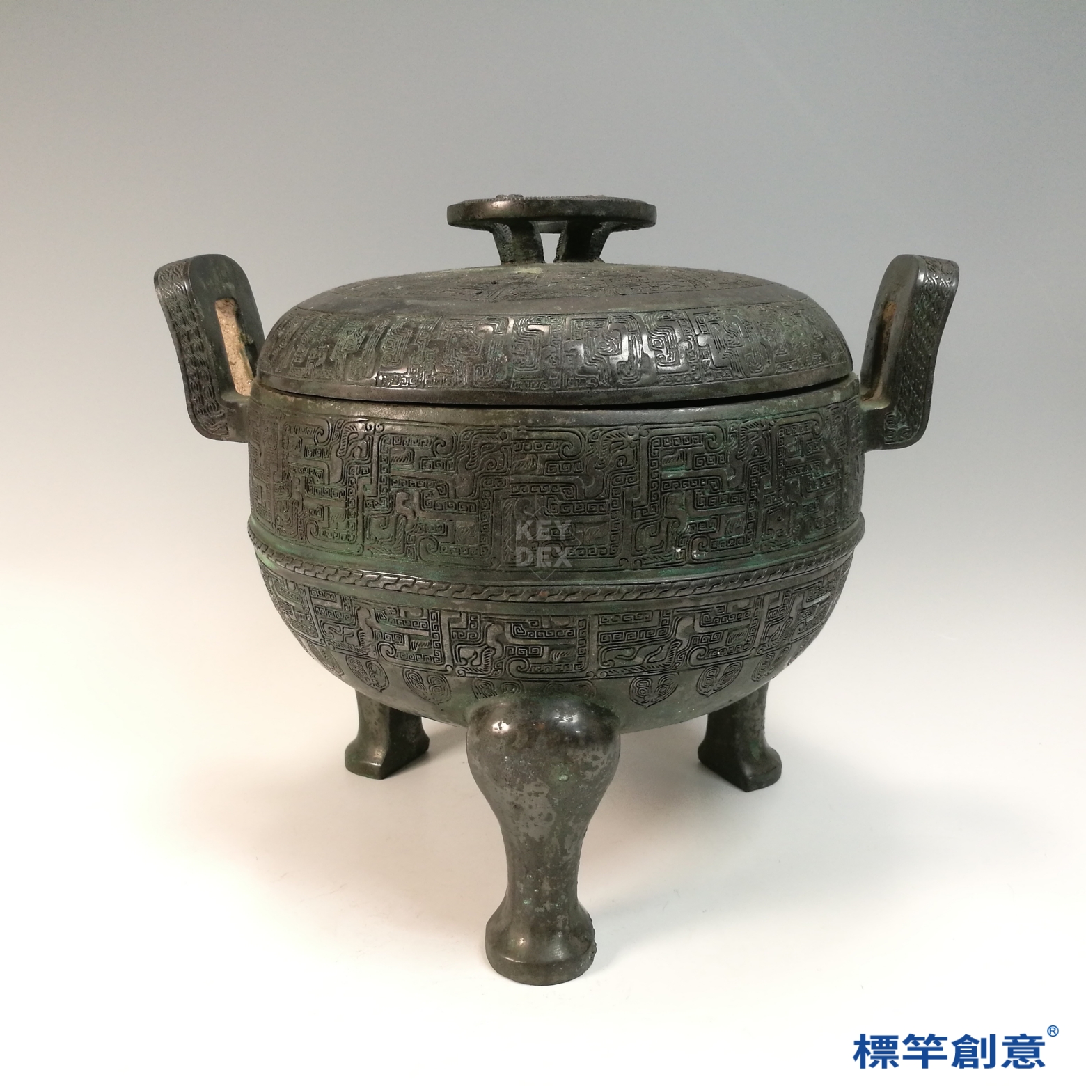 CA004 疑 春秋時期青銅器夔龍雲雷紋雙耳三足帶蓋鼎