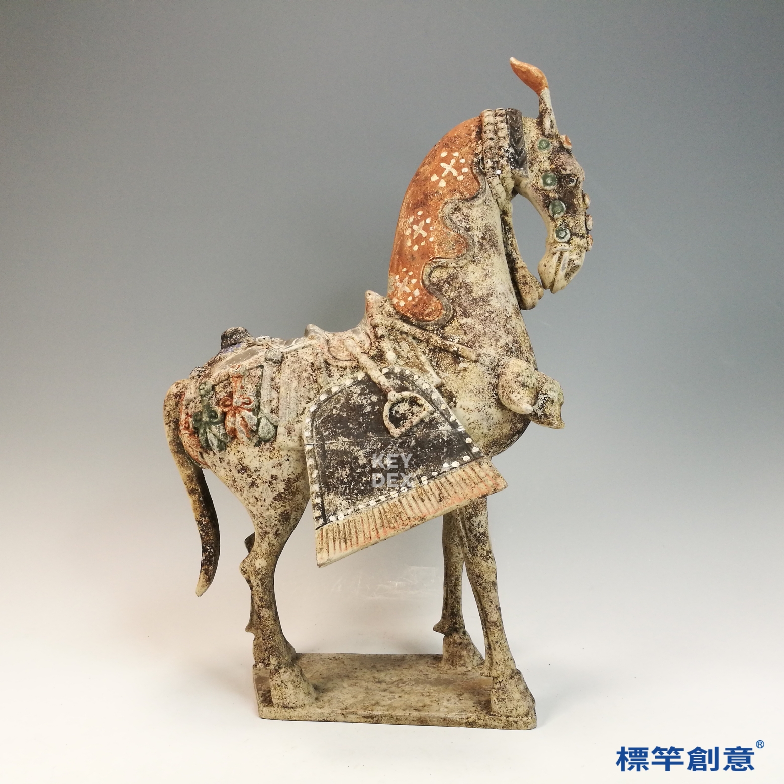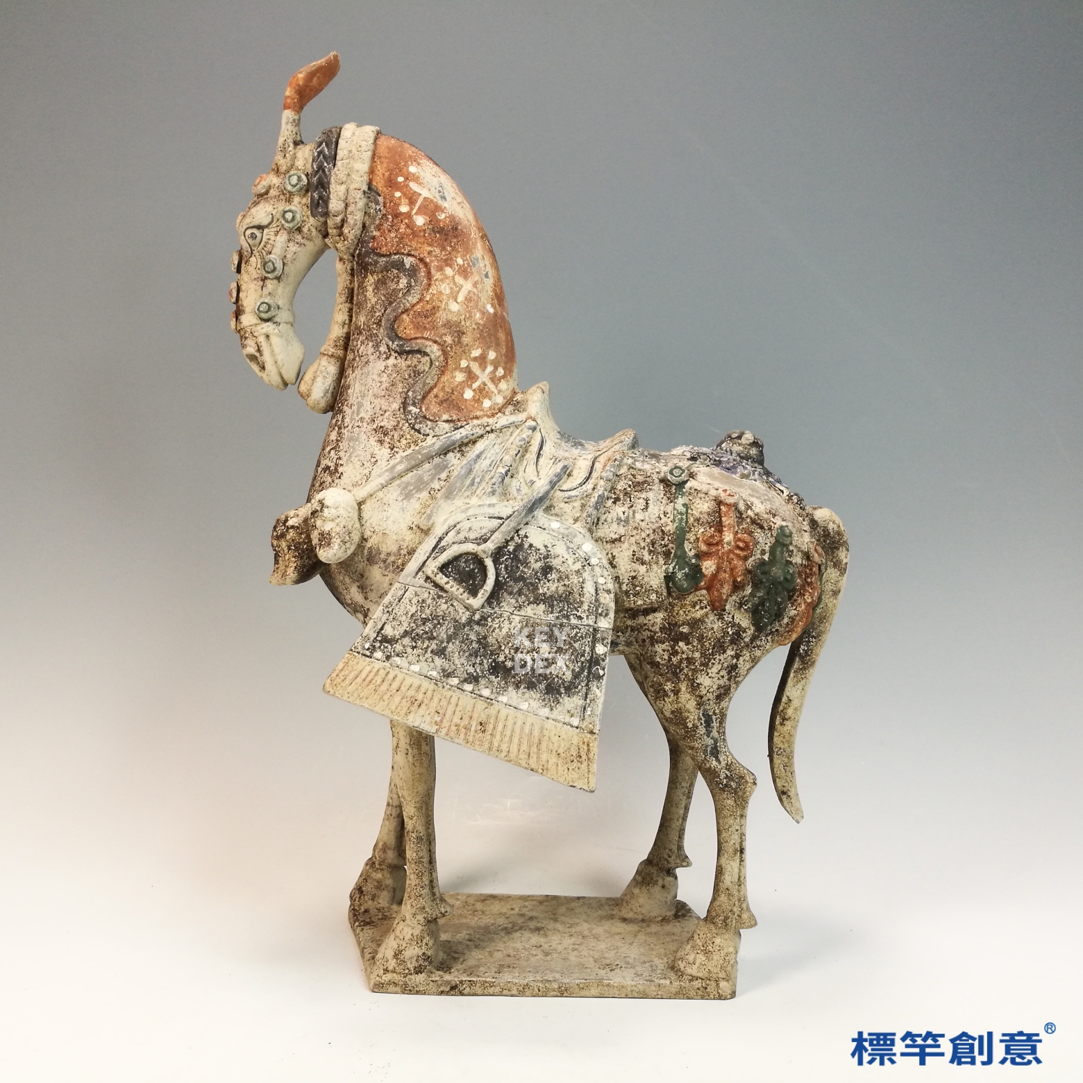FB001 唐代三彩彩繪奔馬擊球仕女騎俑