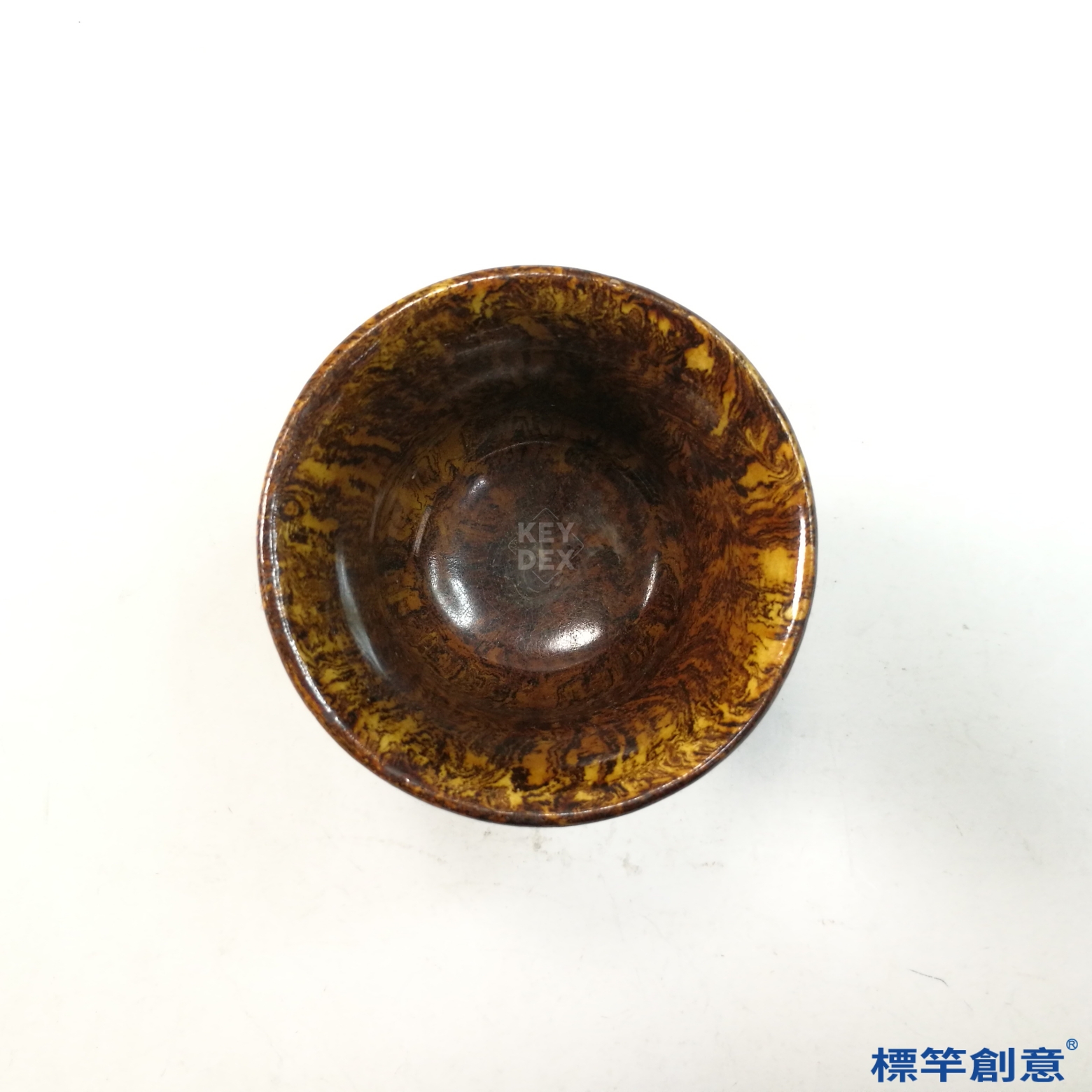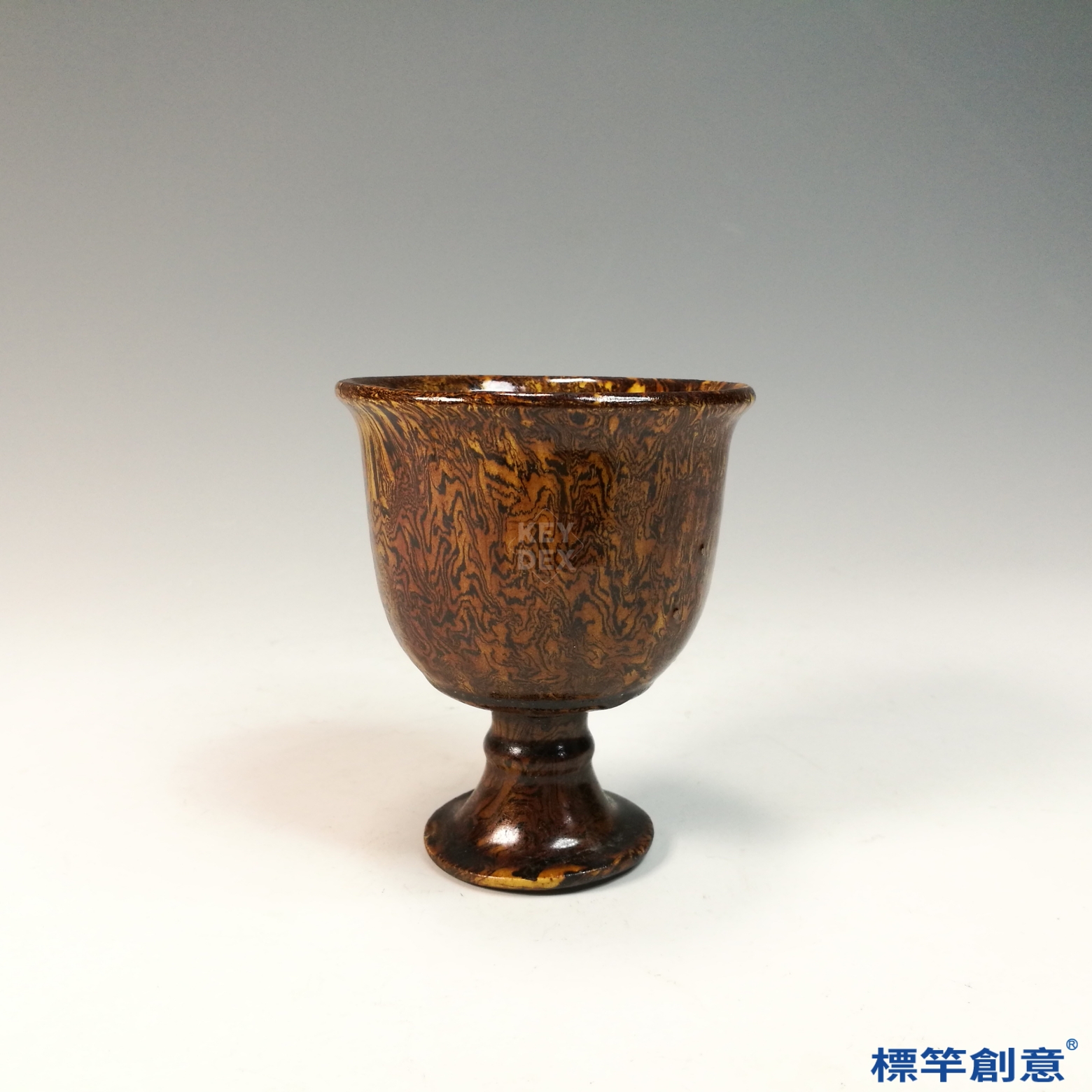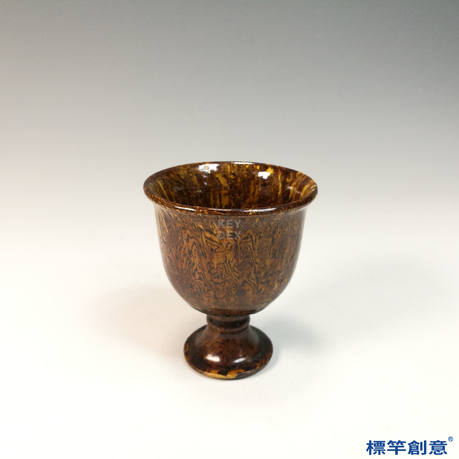 本杯造形典雅、紋理自然,適合用於現代陶瓷茶具、品酒杯、家飾擺件設計。其絞胎圖案可轉化為陶板、器皿或玻璃製品紋樣,亦可作為藝術裝置元素,展現東方自然美學精神。