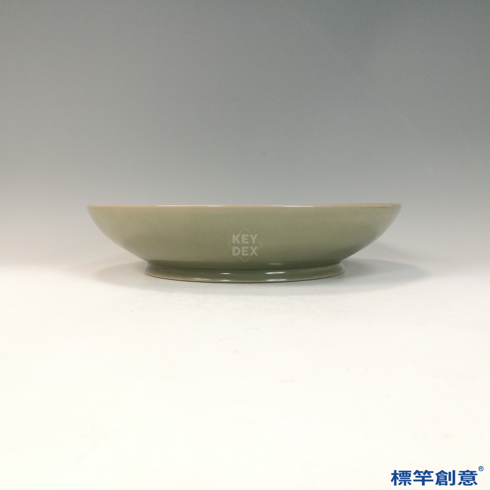 本器通高約5.5公分,口徑約38公分,器形為淺腹、敞口、寬沿之大盤,盤壁微曲,圈足短而穩固,整體比例開展大氣,製作工整。