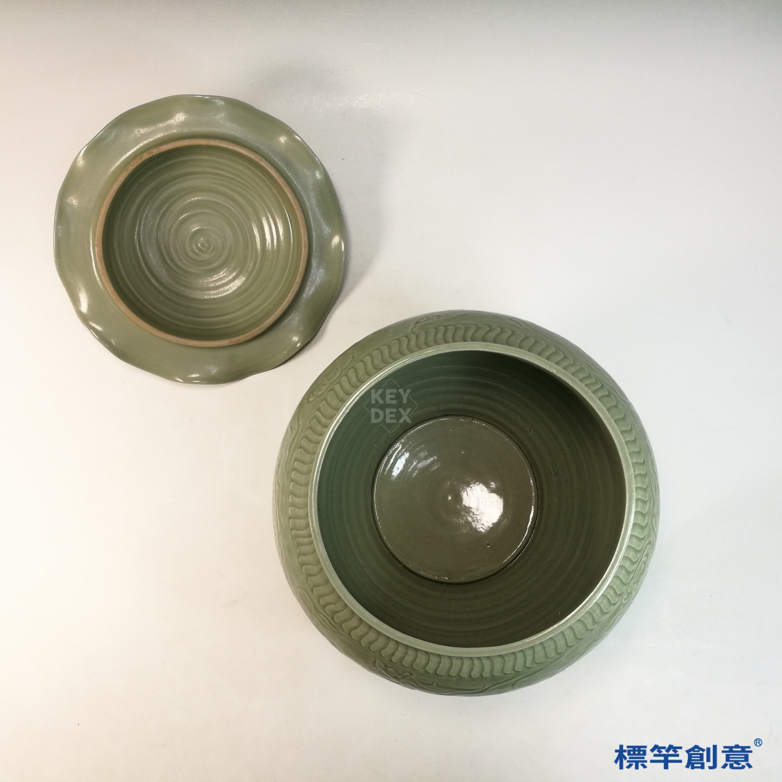 DB007 漢代原始青瓷模印雲紋三足盤
