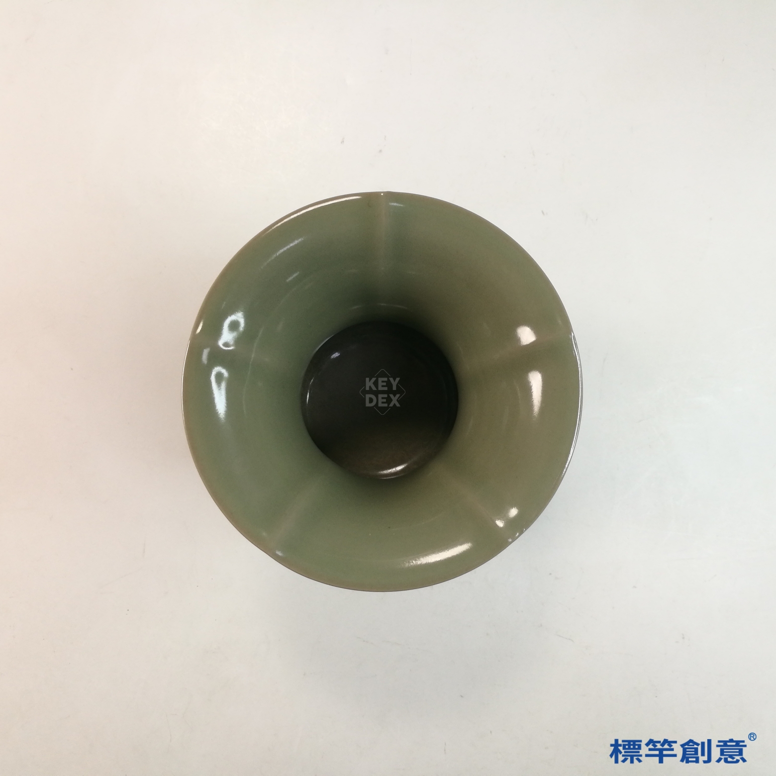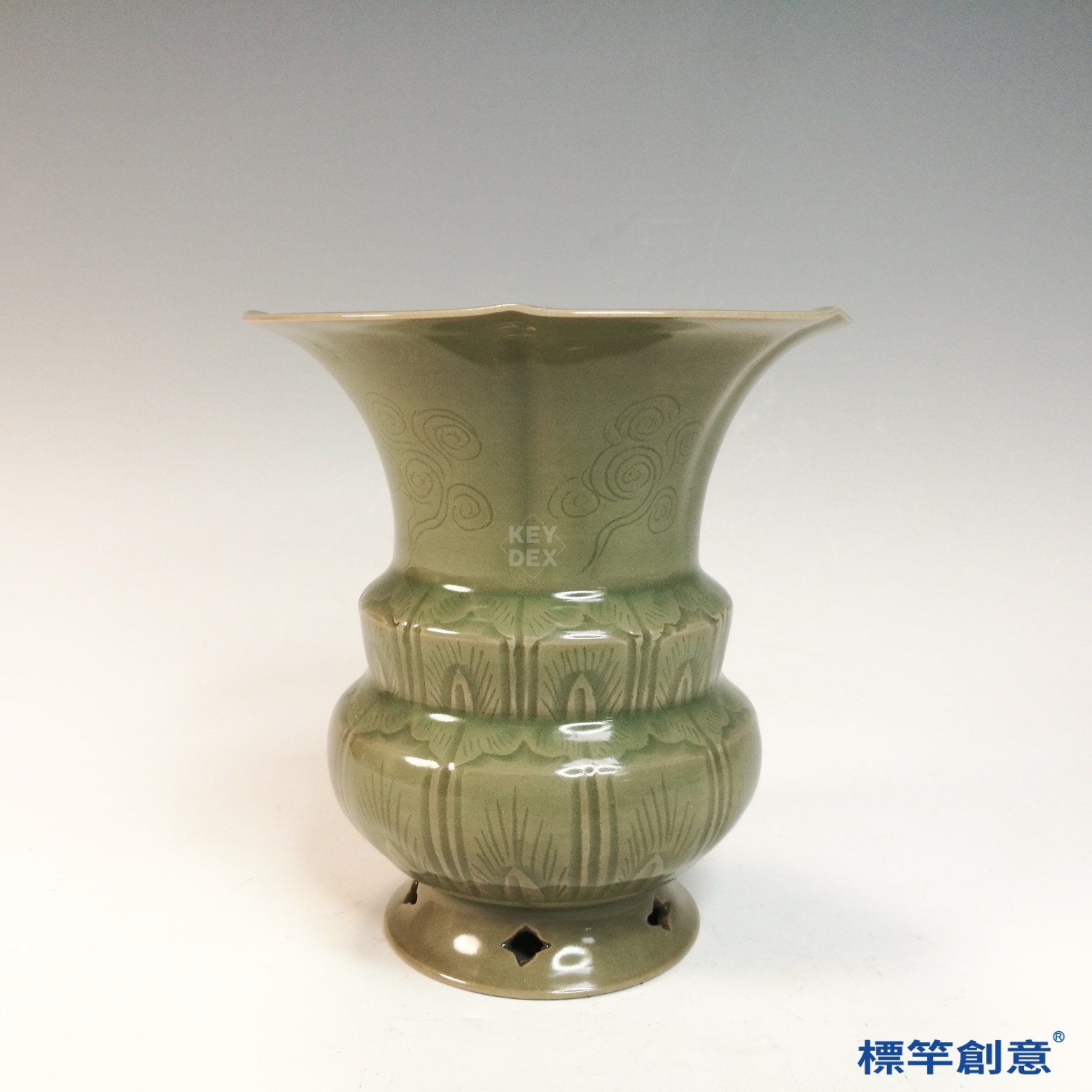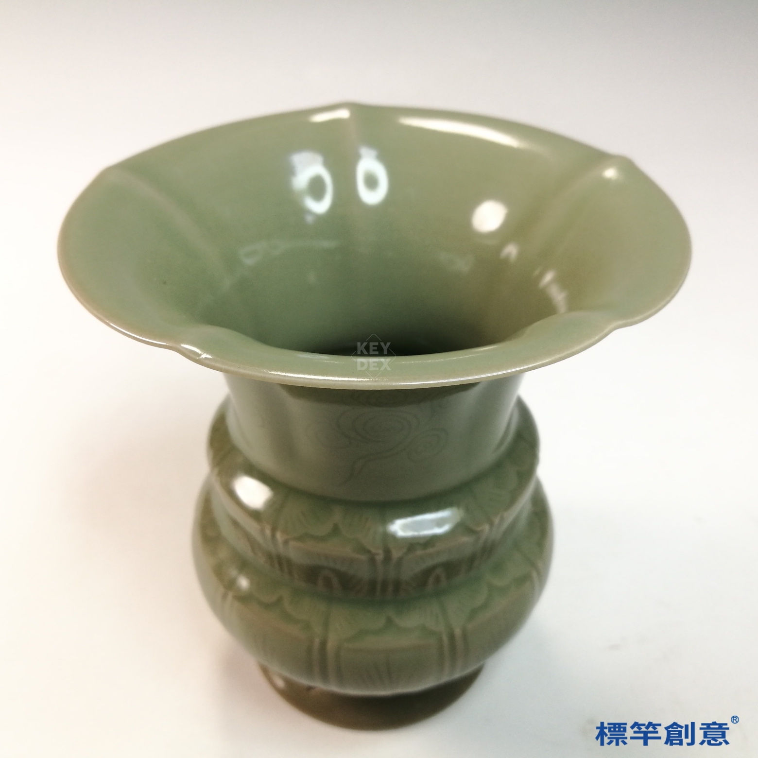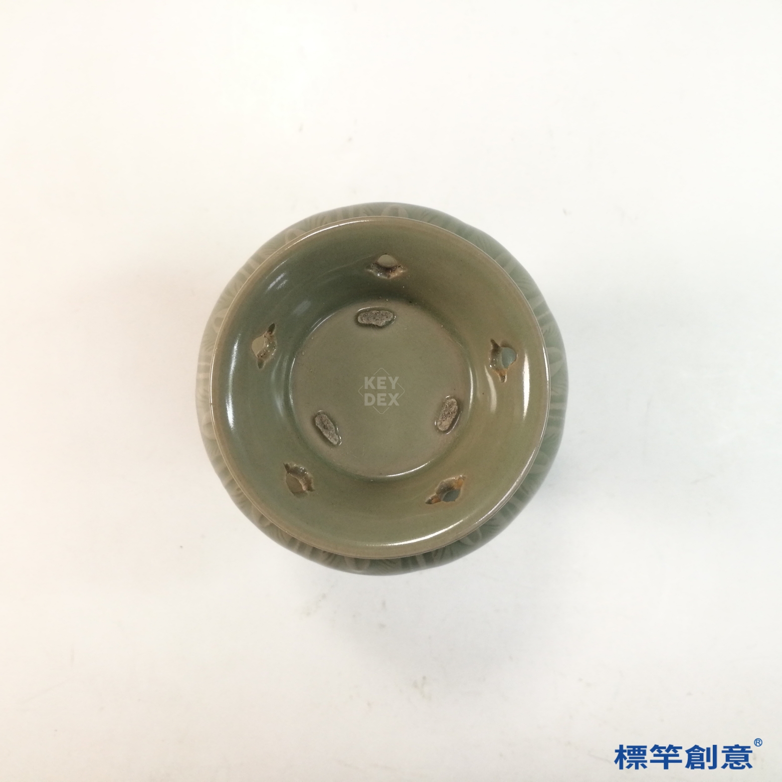 FC095 五代越窯青瓷刻蕉葉紋葵口渣斗