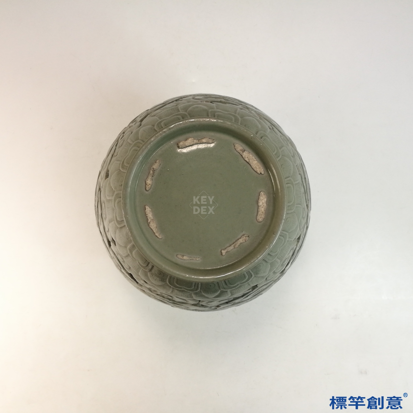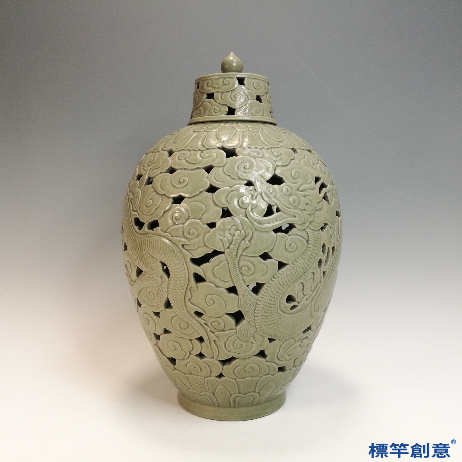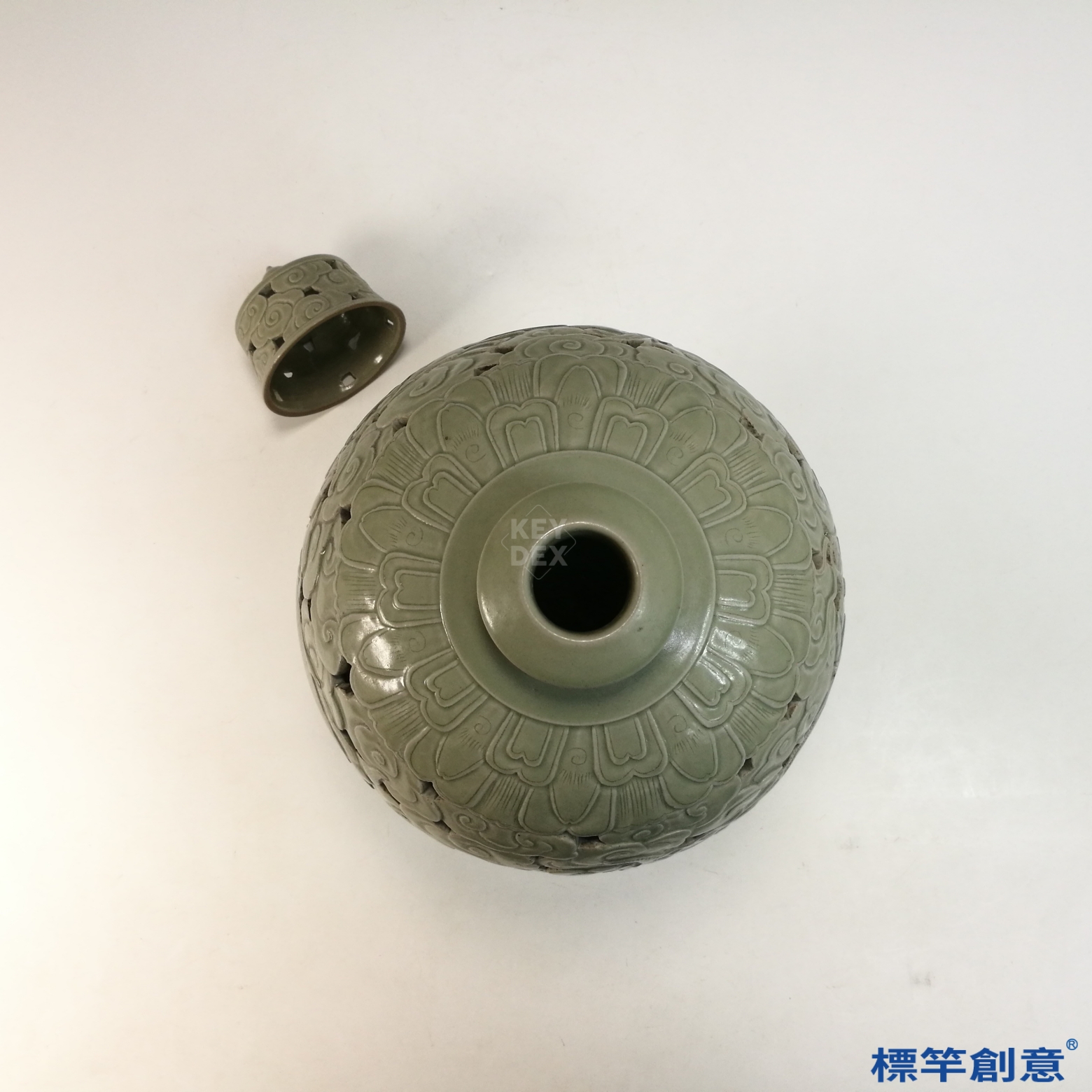 FC097 五代越窯青瓷龍紋鏤空帶蓋梅瓶