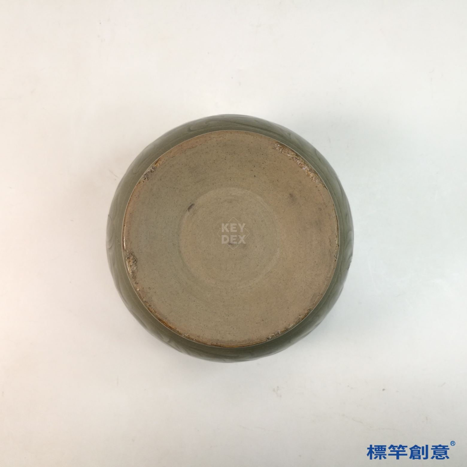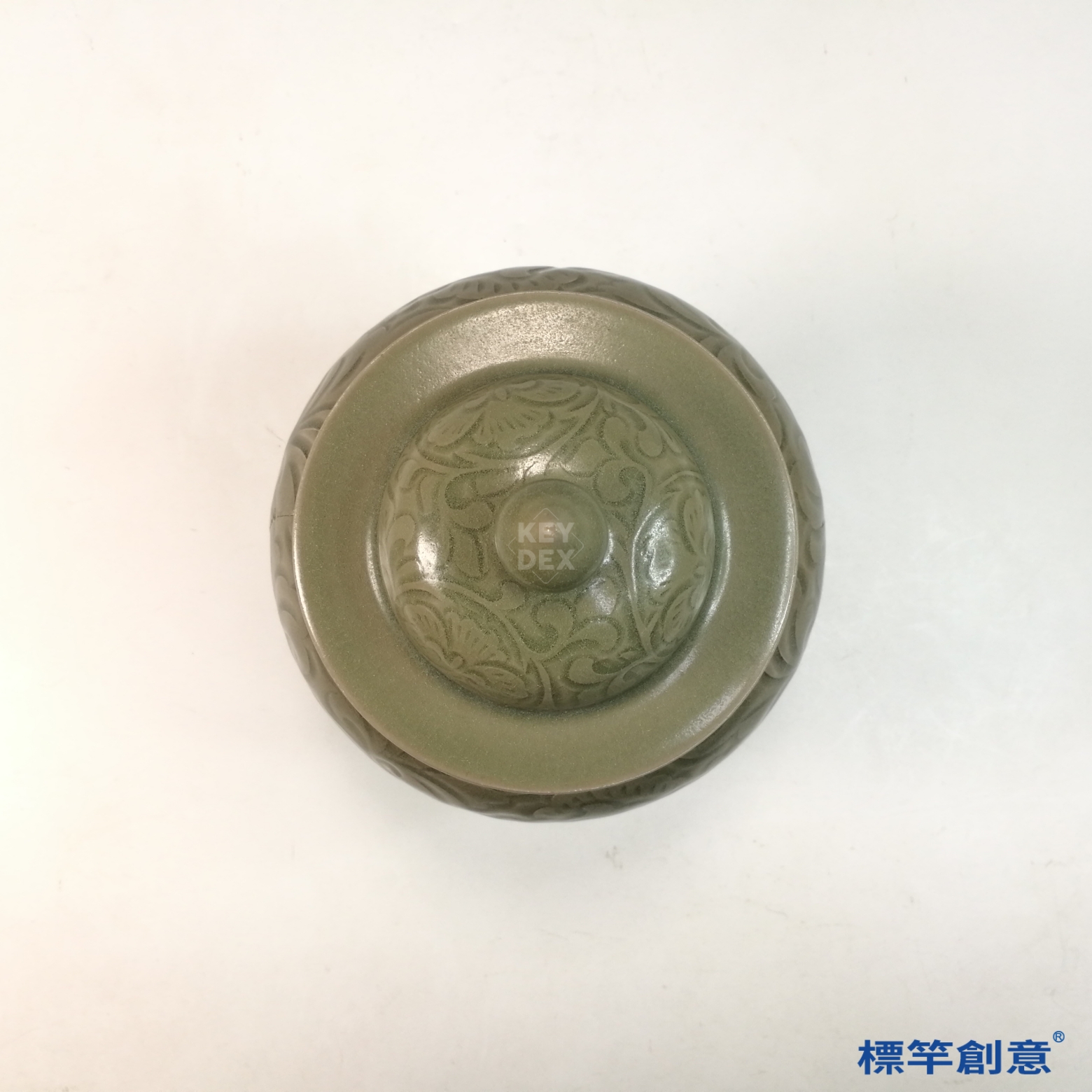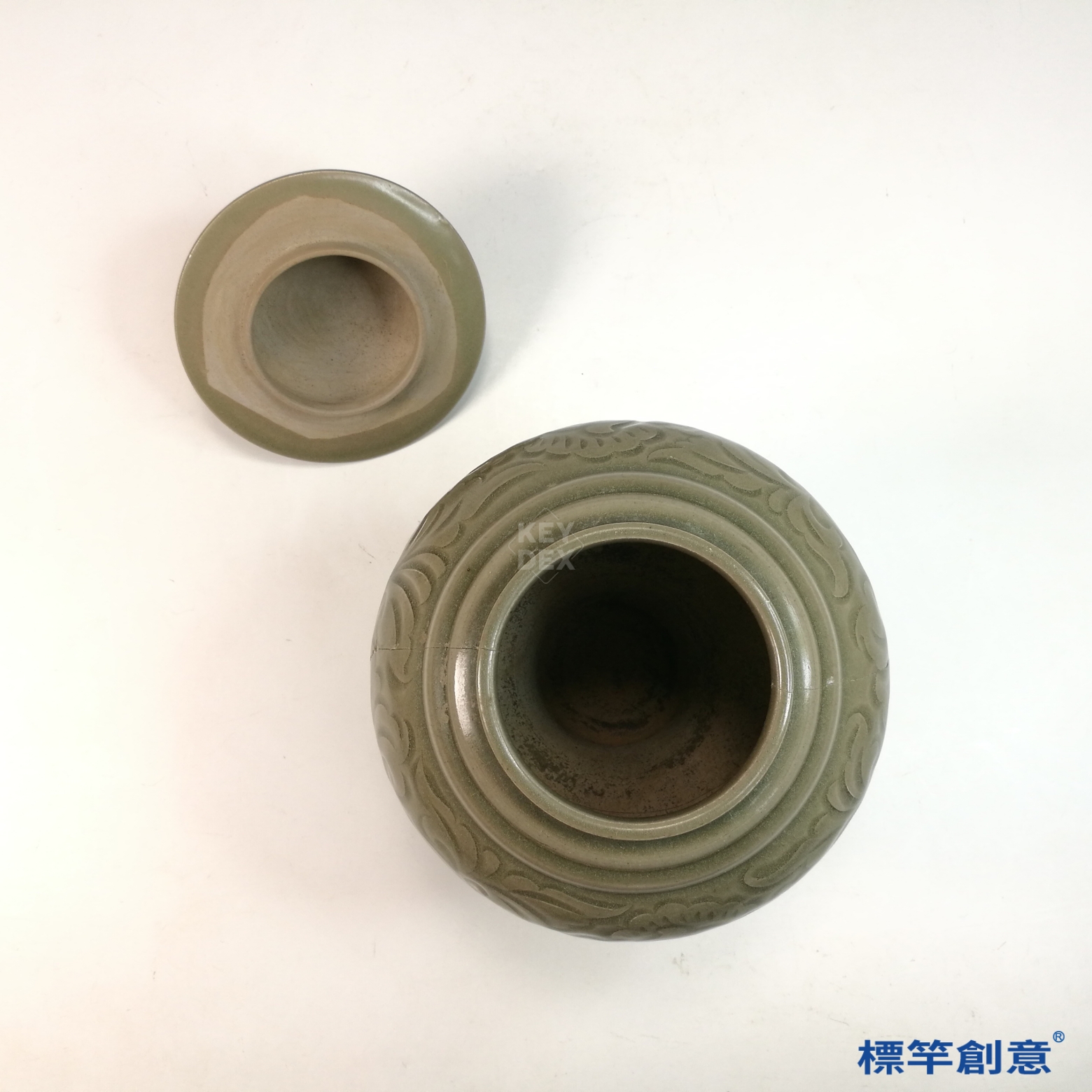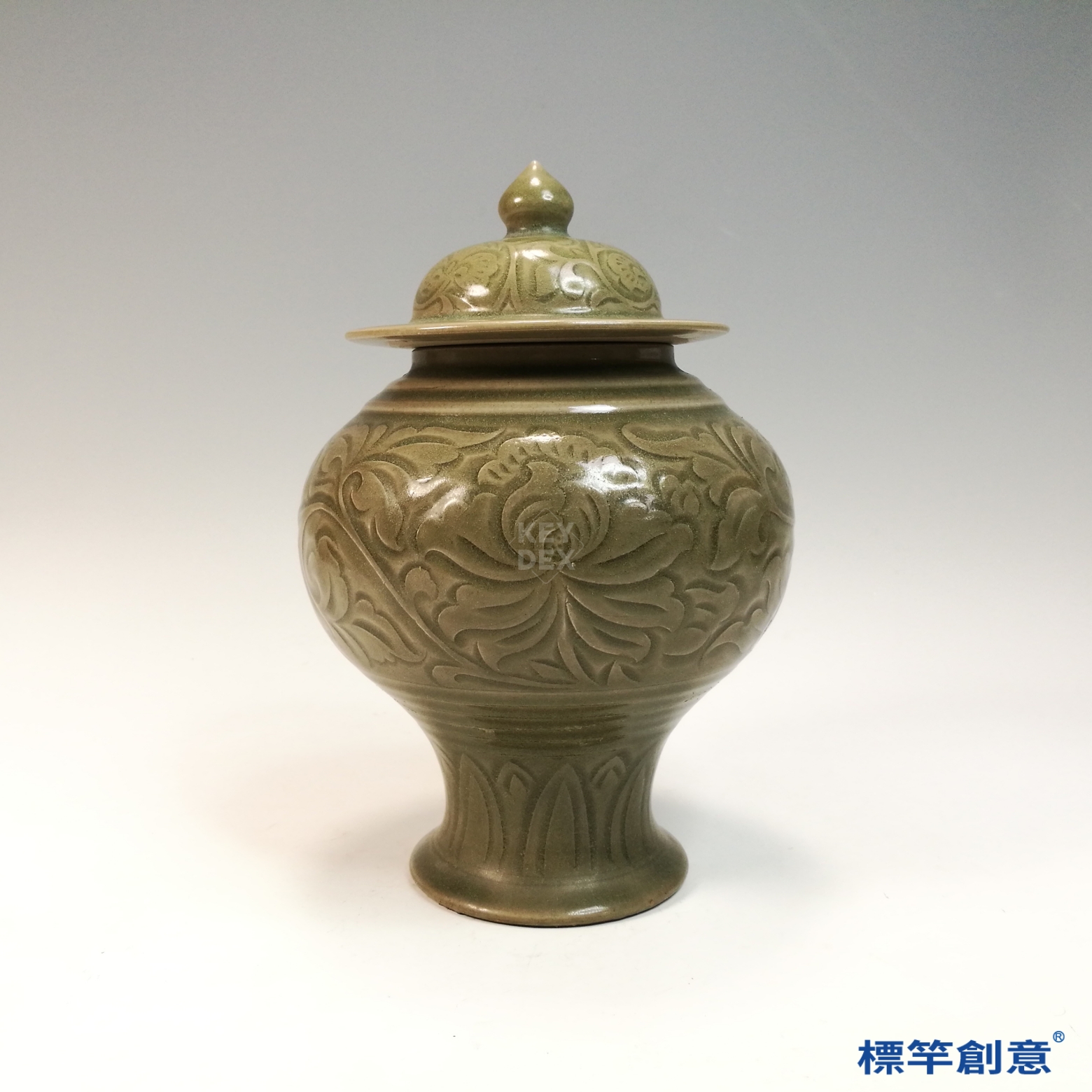 GA085 宋代龍泉窯青瓷刻纏枝蓮紋高足豆式將軍罐