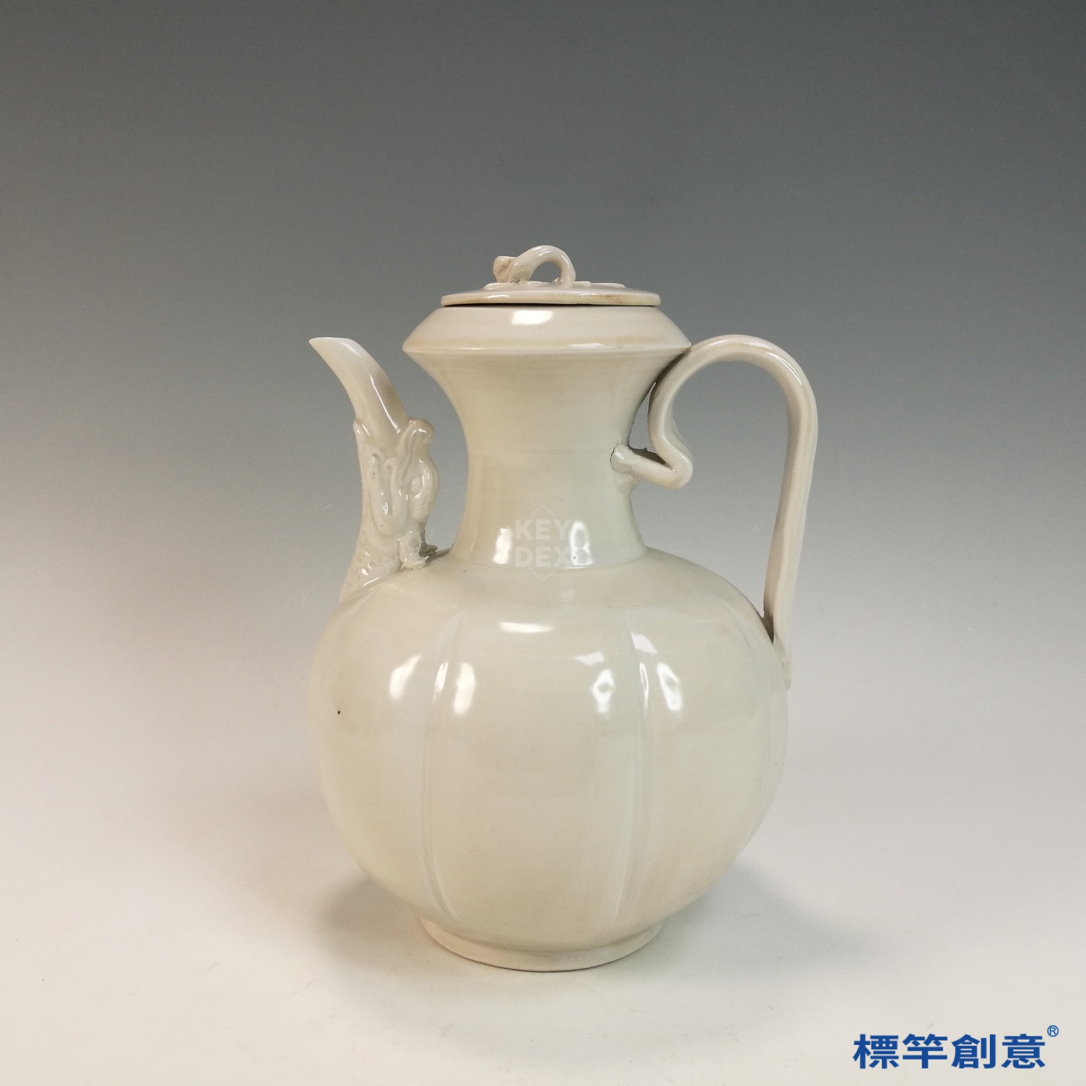 GB202 北宋定窯白釉瓜稜龍首執壺