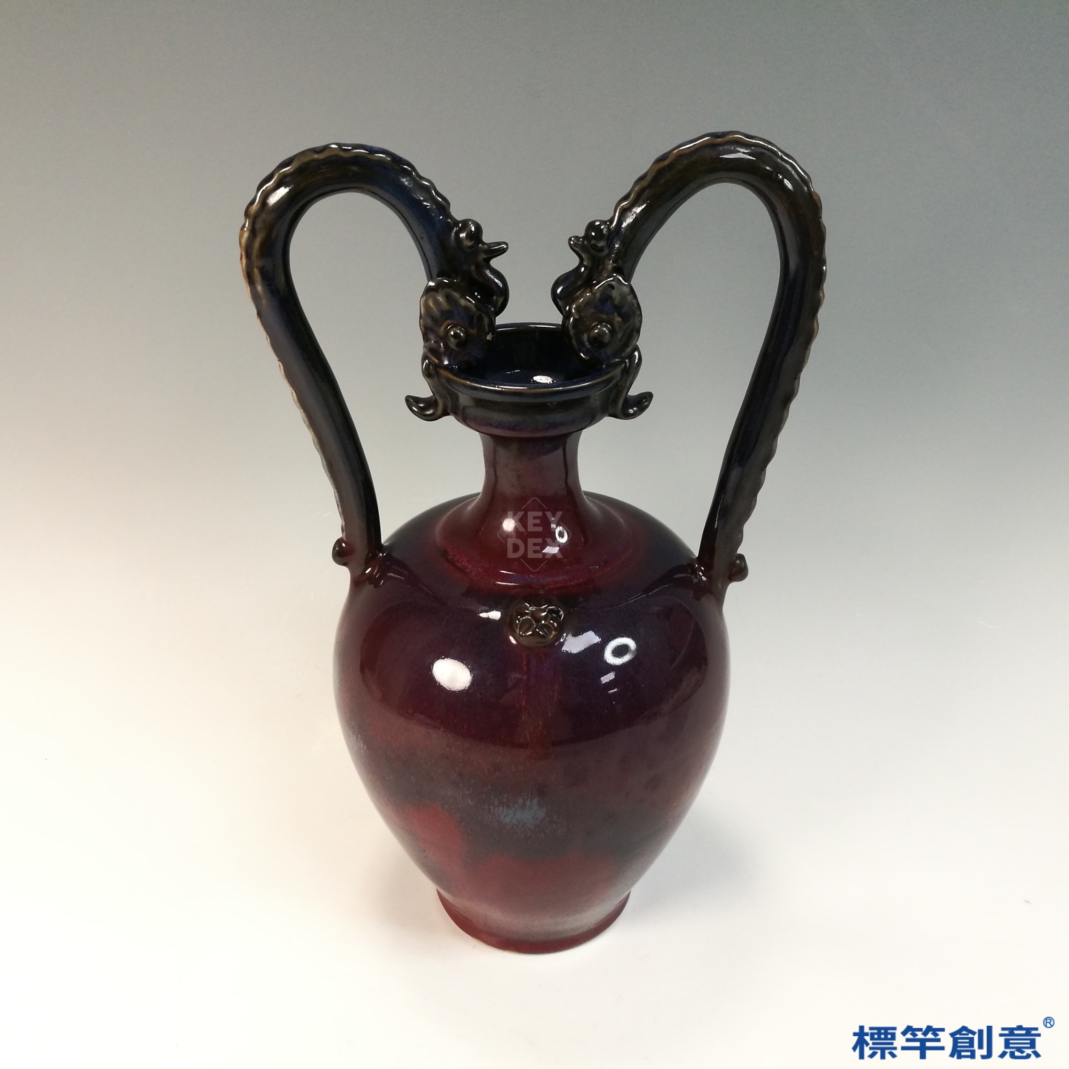 GB209 北宋鈞窯紫紅釉官字款雙龍瓶