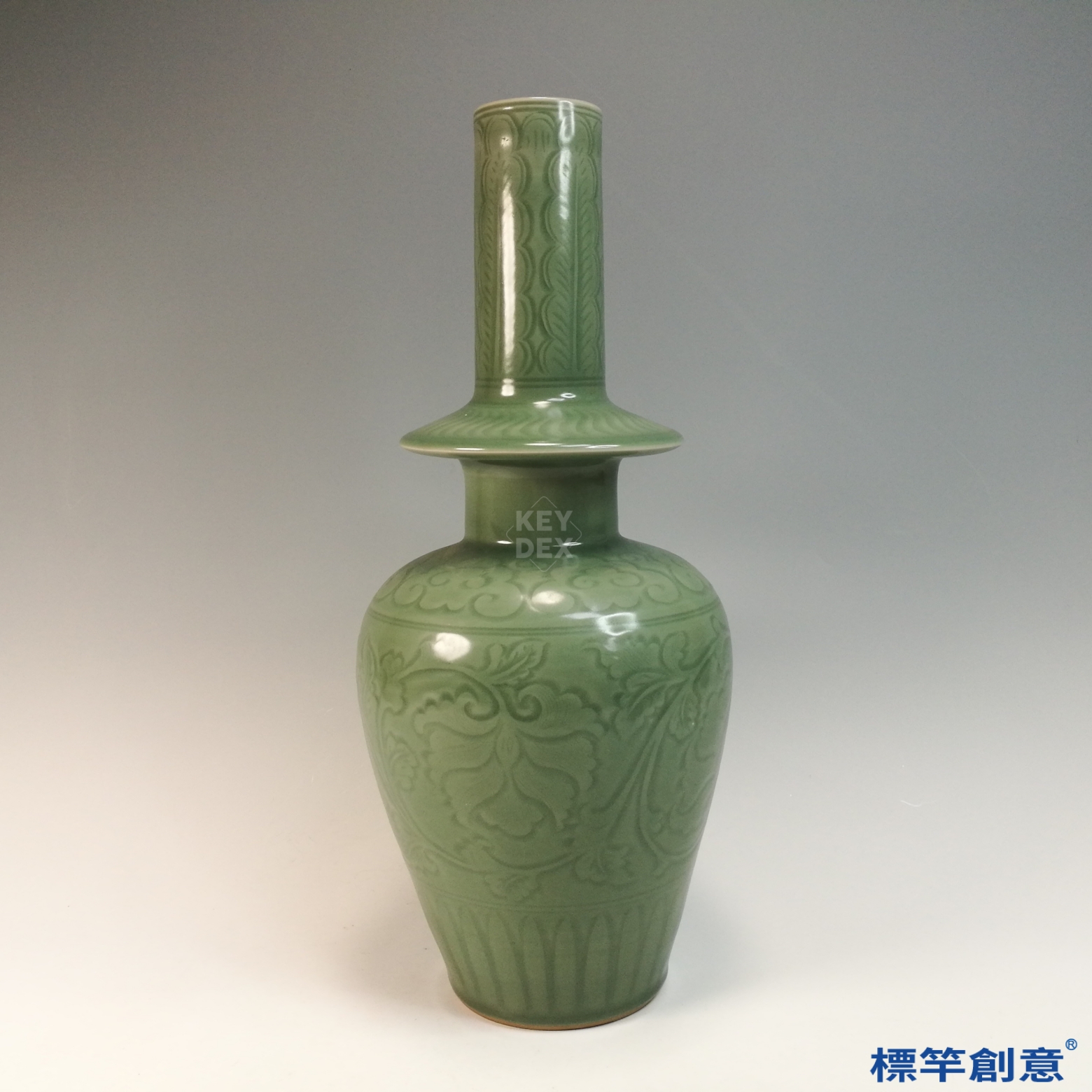 GB212 北宋龍泉窯刻纒枝花卉紋吉字淨瓶