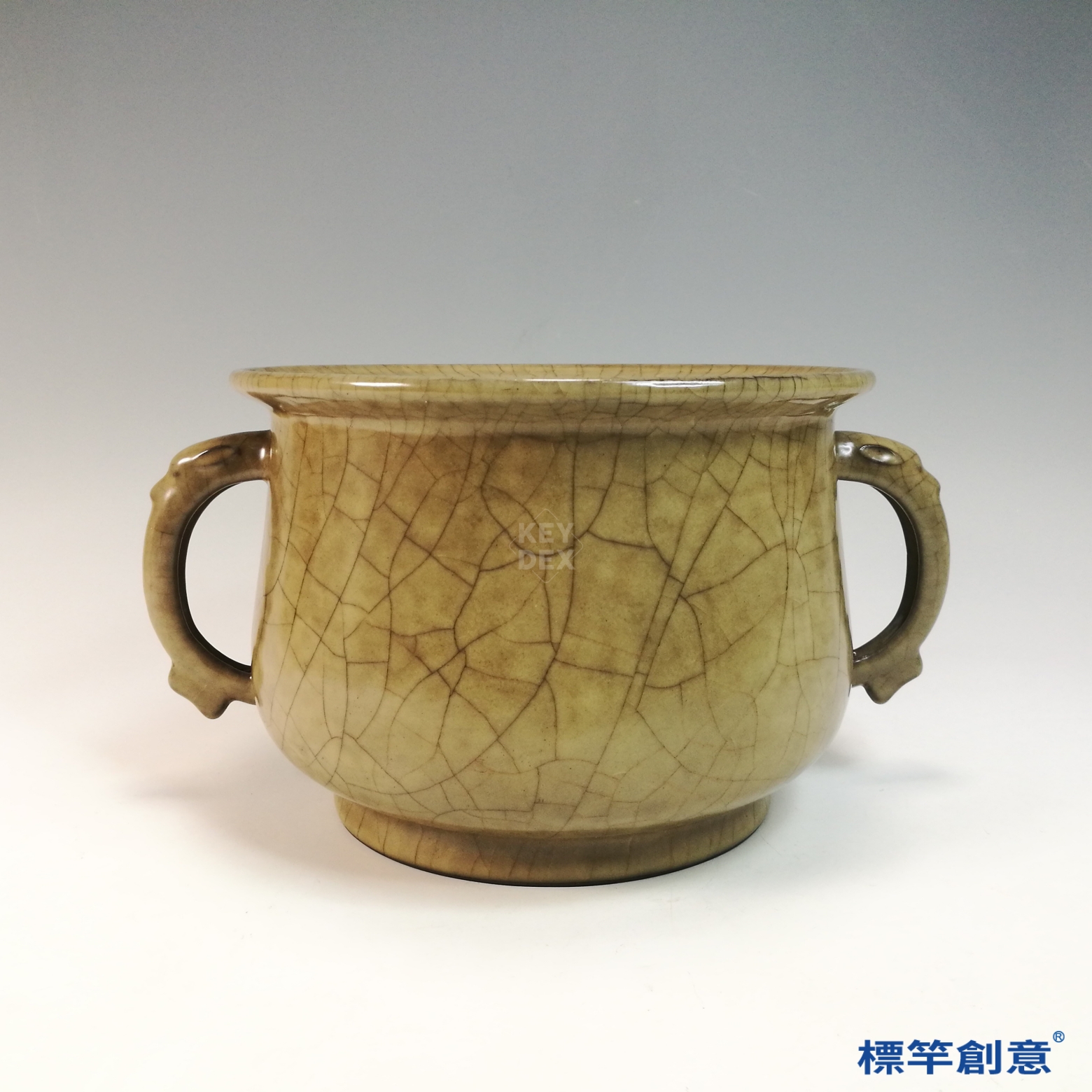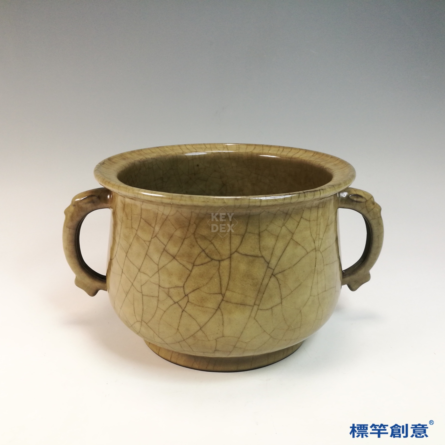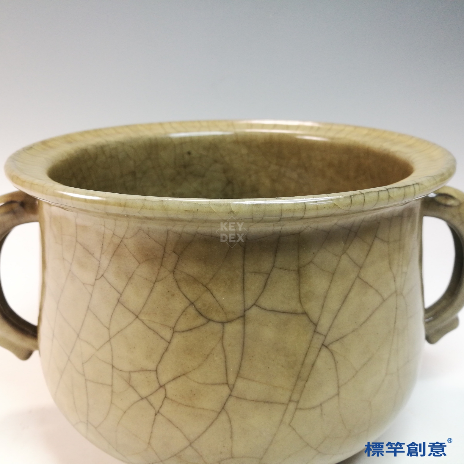 GC247 南宋哥窯系米黃釉開片雙耳香爐