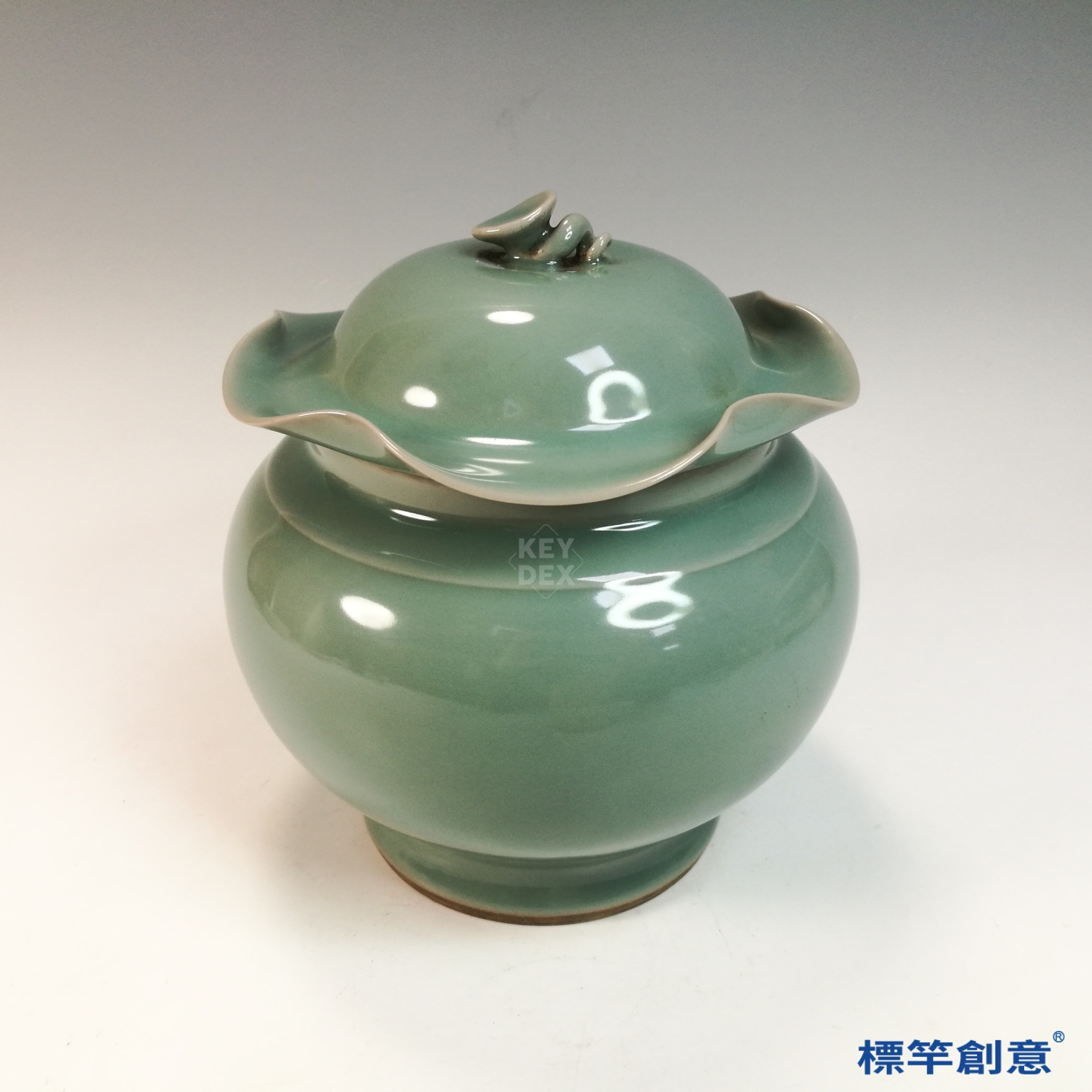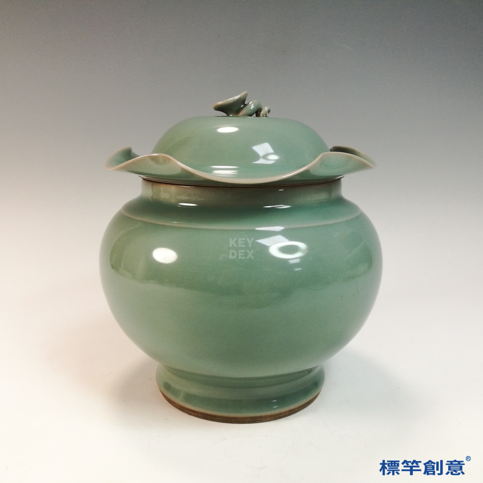 GC248 南宋龍泉窯粉青釉荷葉蓋罐