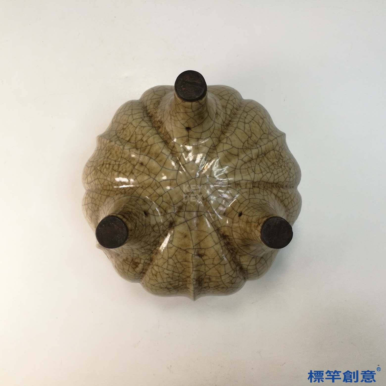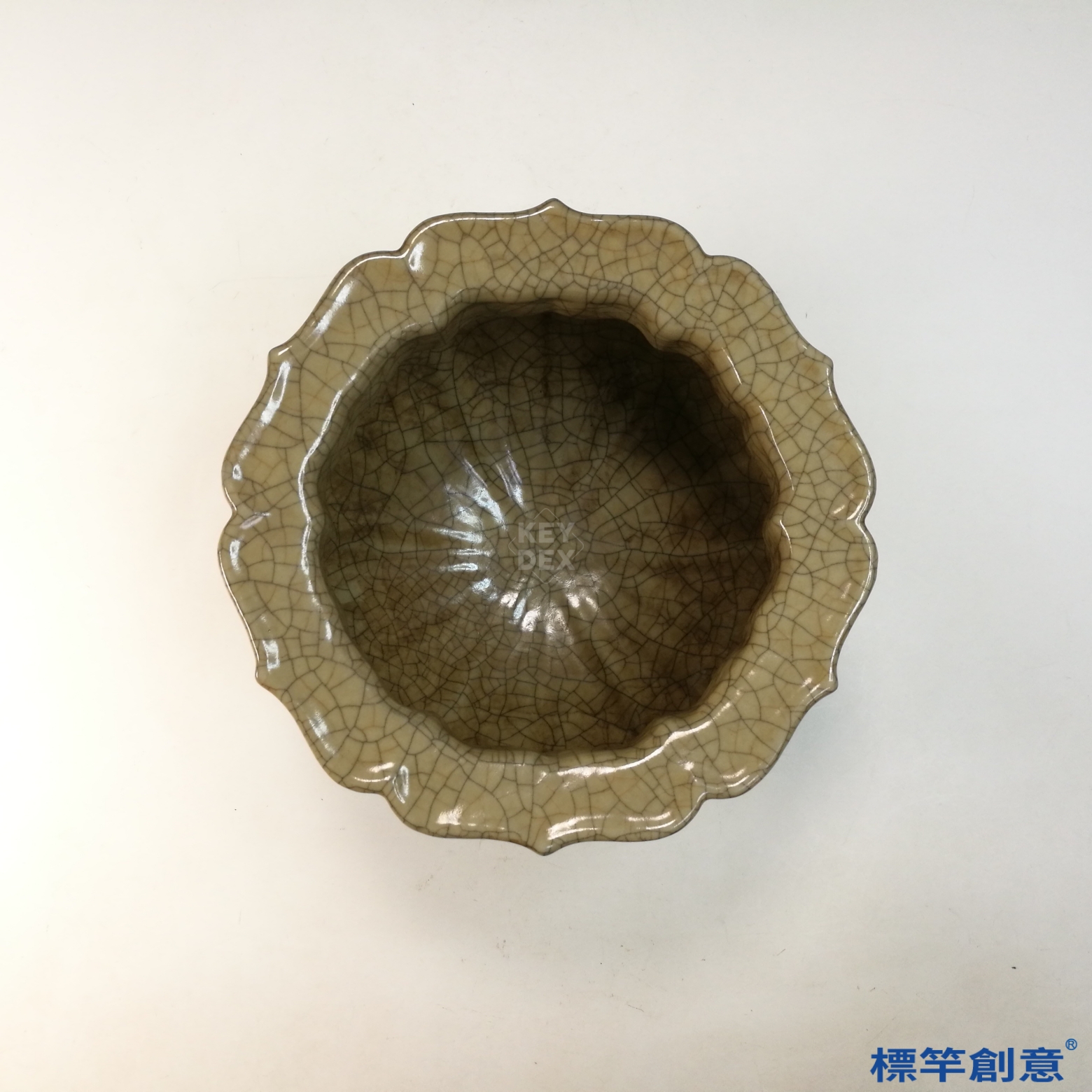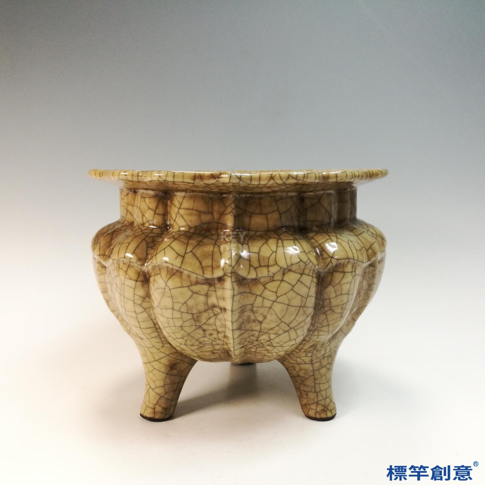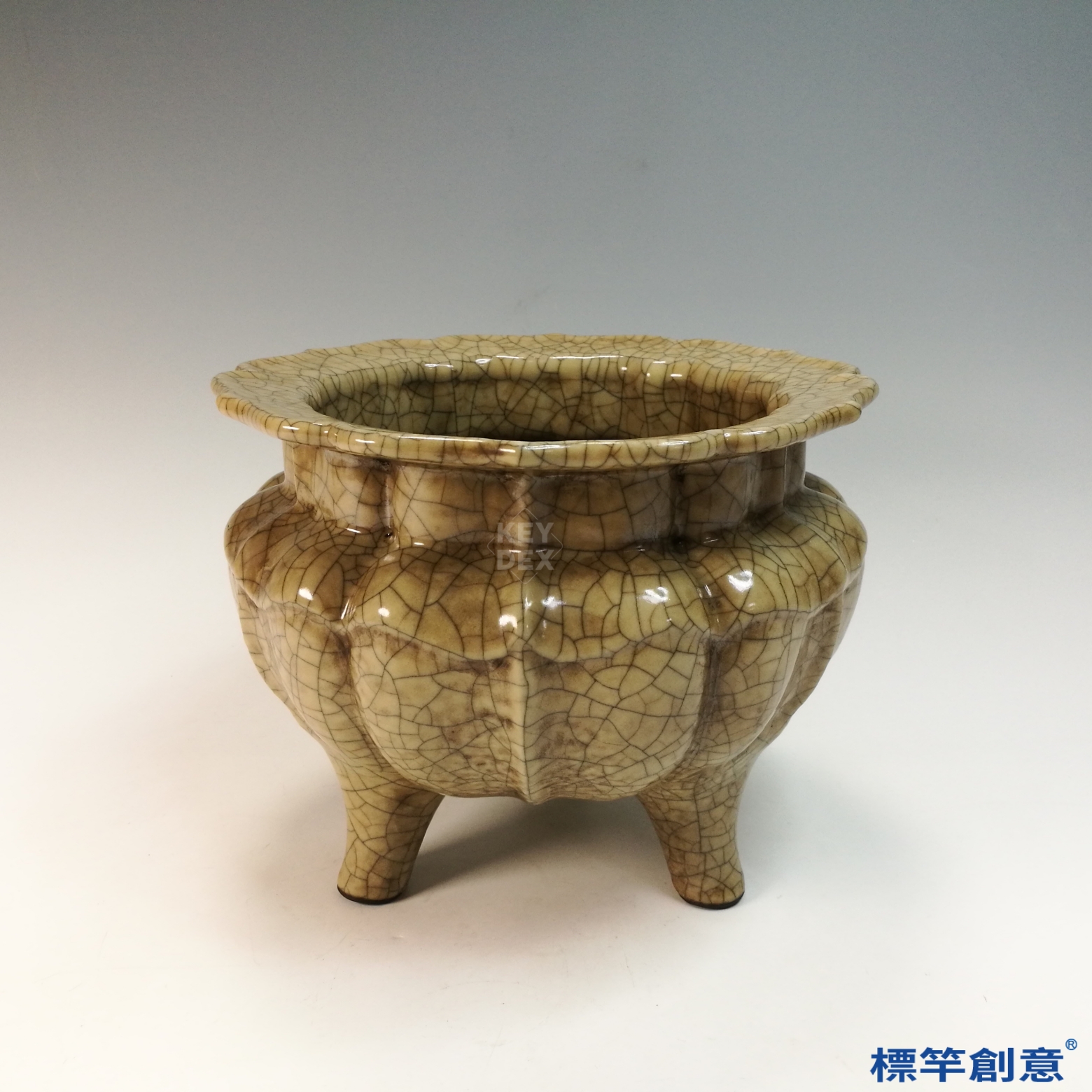 GC259 南宋哥窯系黃釉開片多稜花口鬲式香爐
