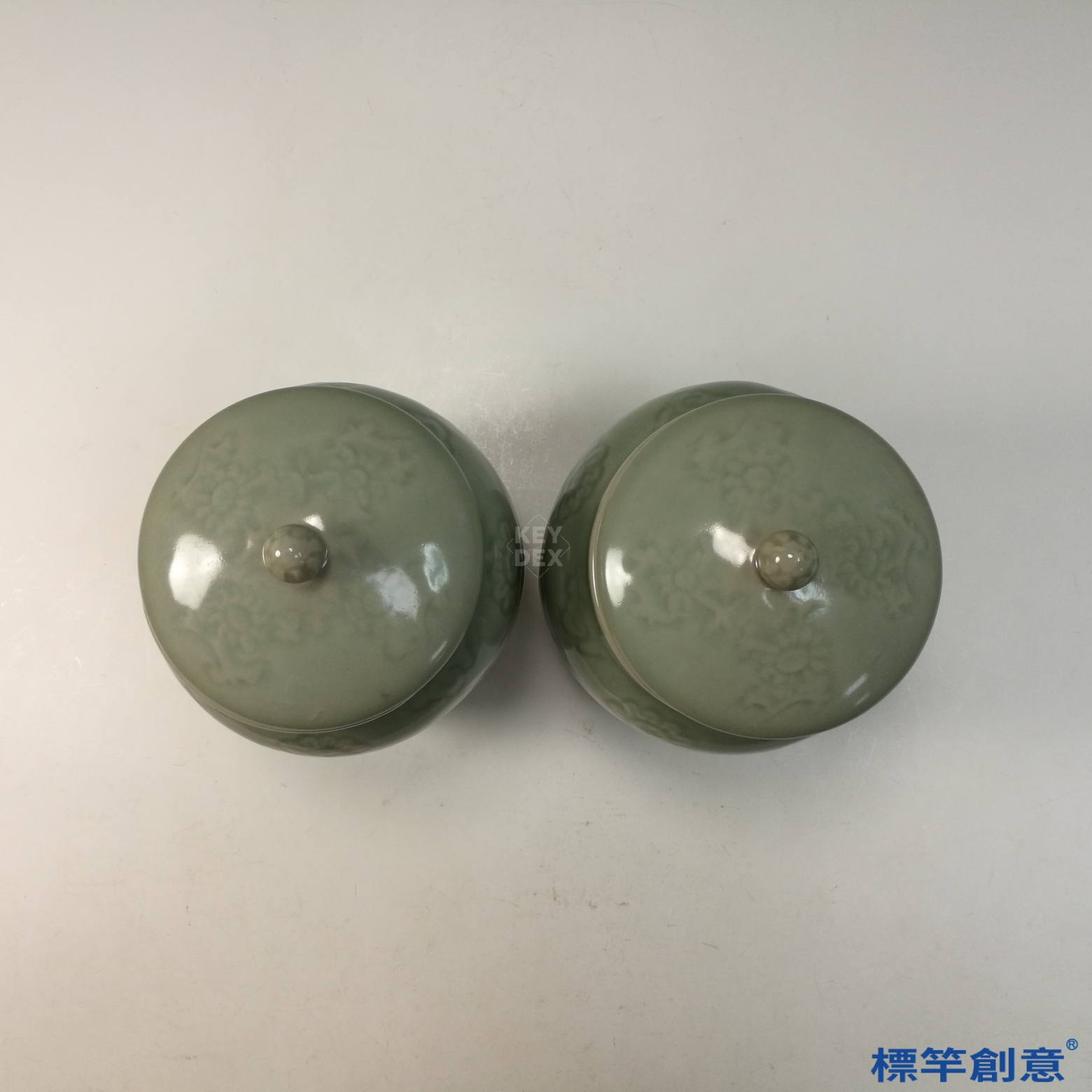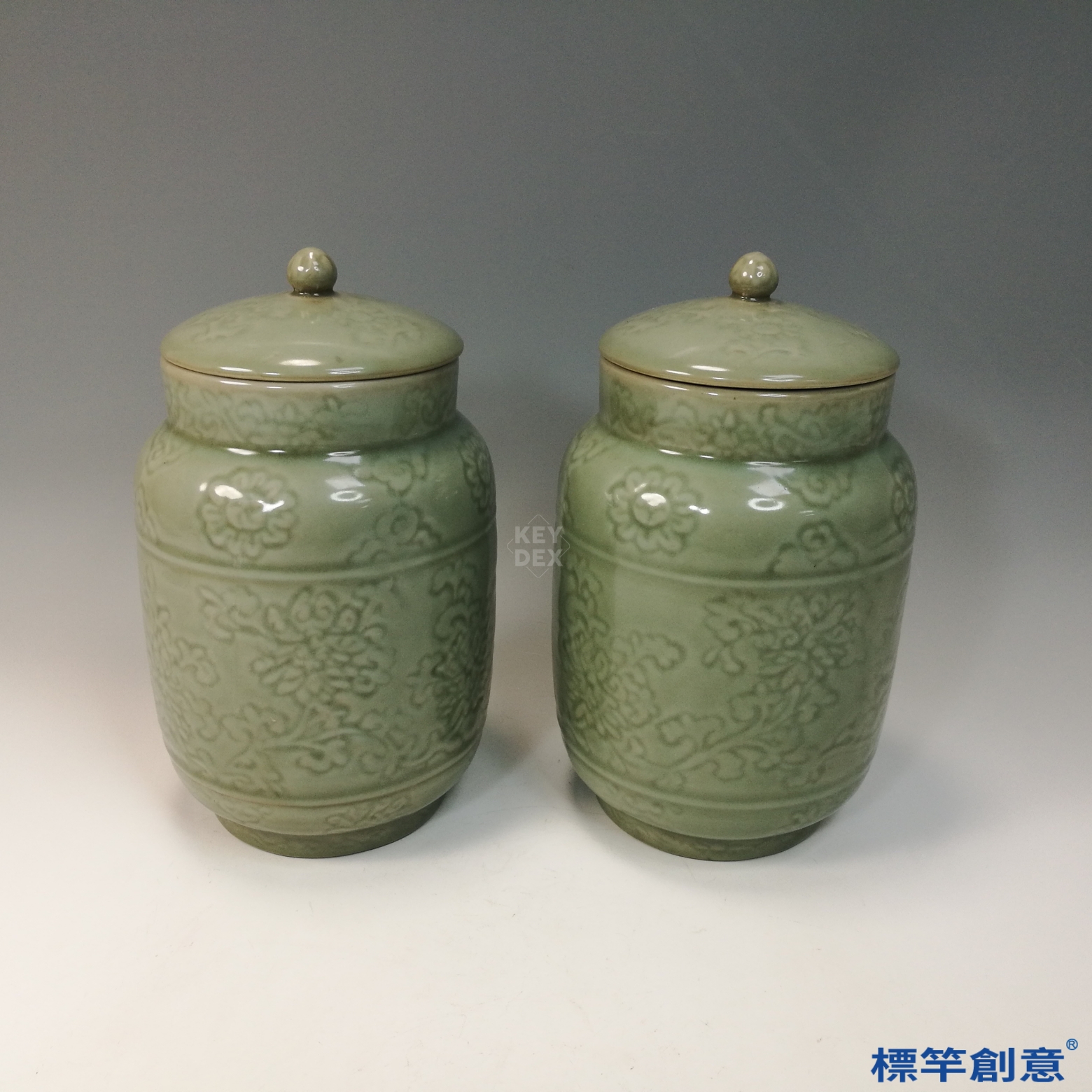 HA096 元代龍泉窯粉青釉印花仿西亞風格壯罐一對