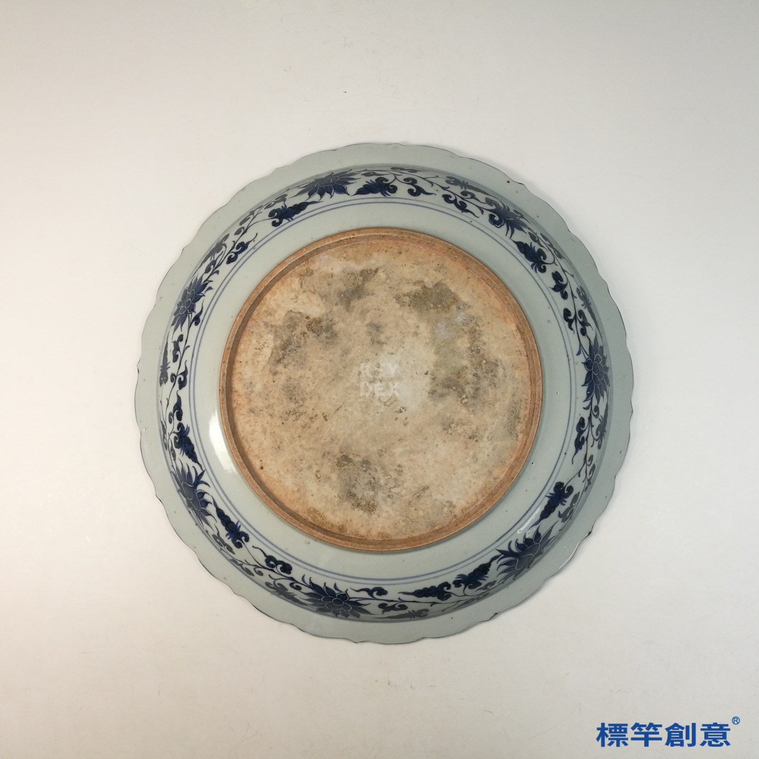 HA102 元代景德鎮窯青花繪花卉紋葵口大盤