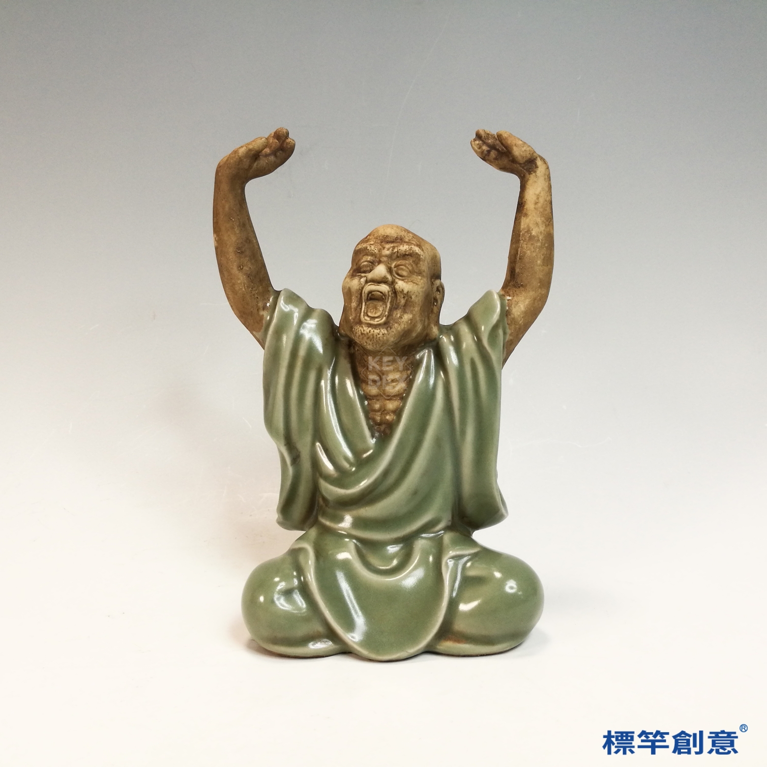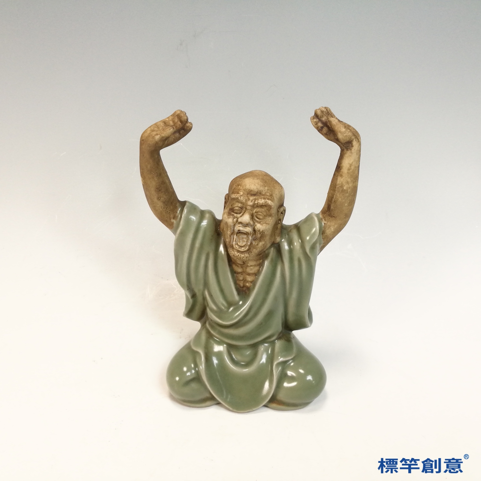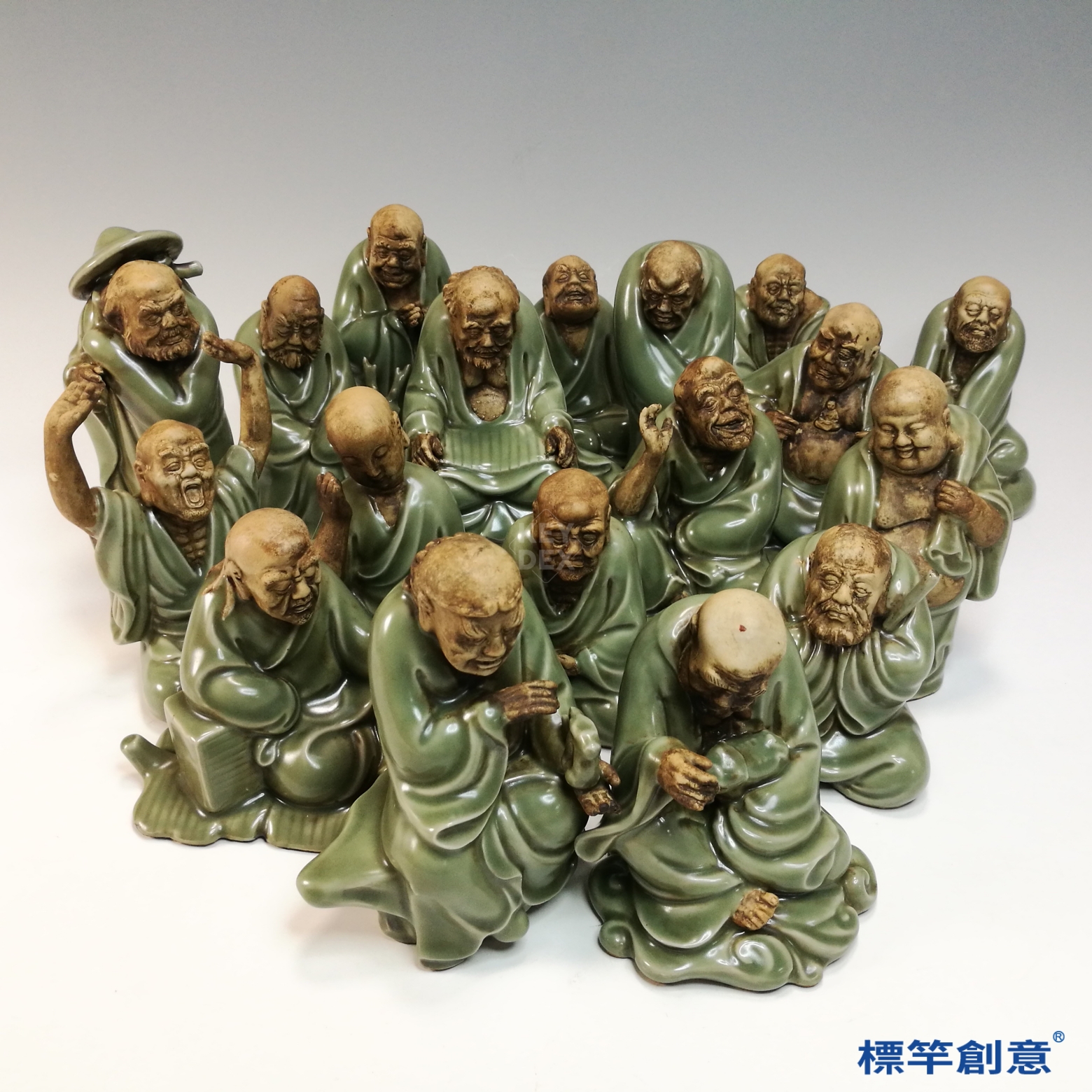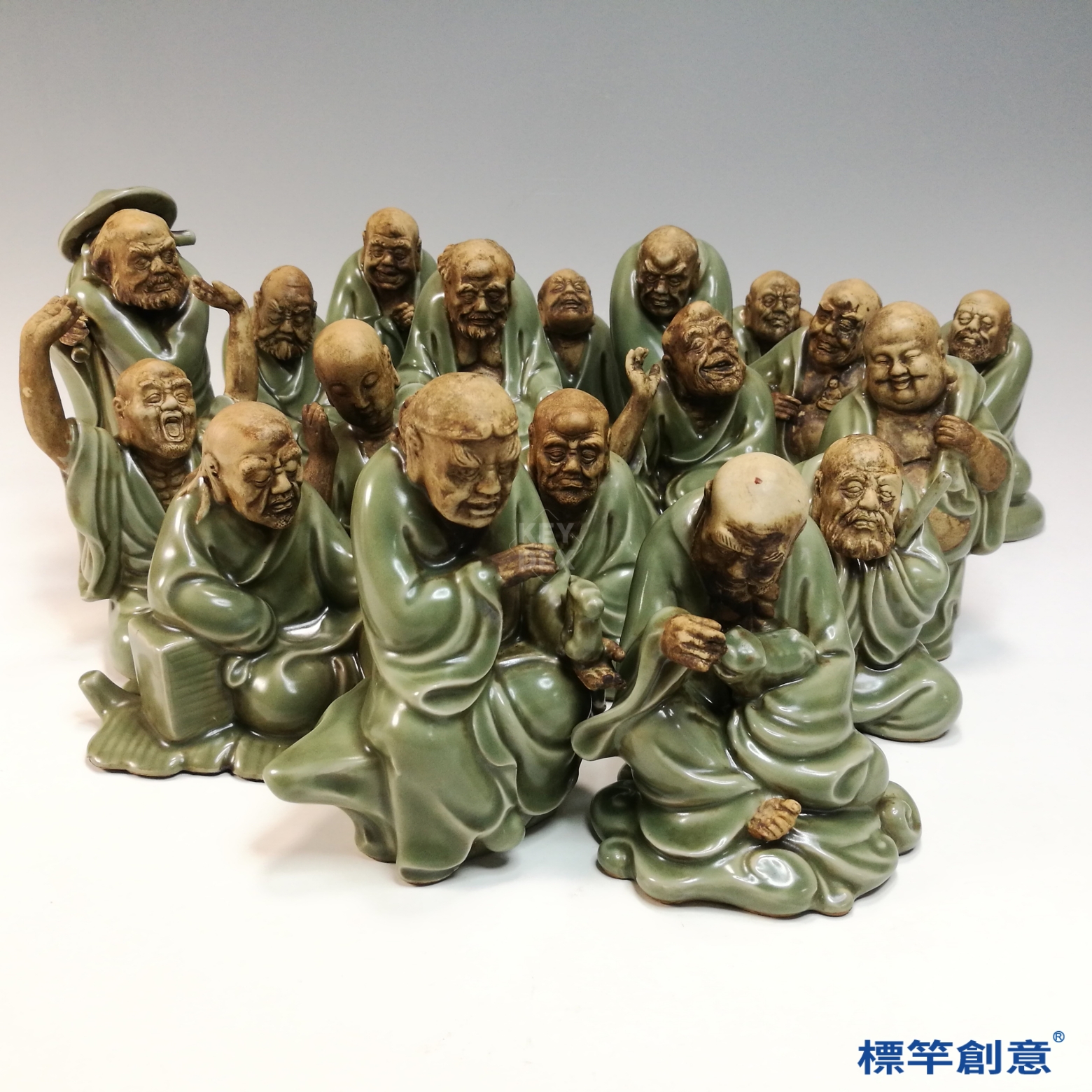 HA109 元代龍泉窯青釉露胎十八羅漢人物像一組