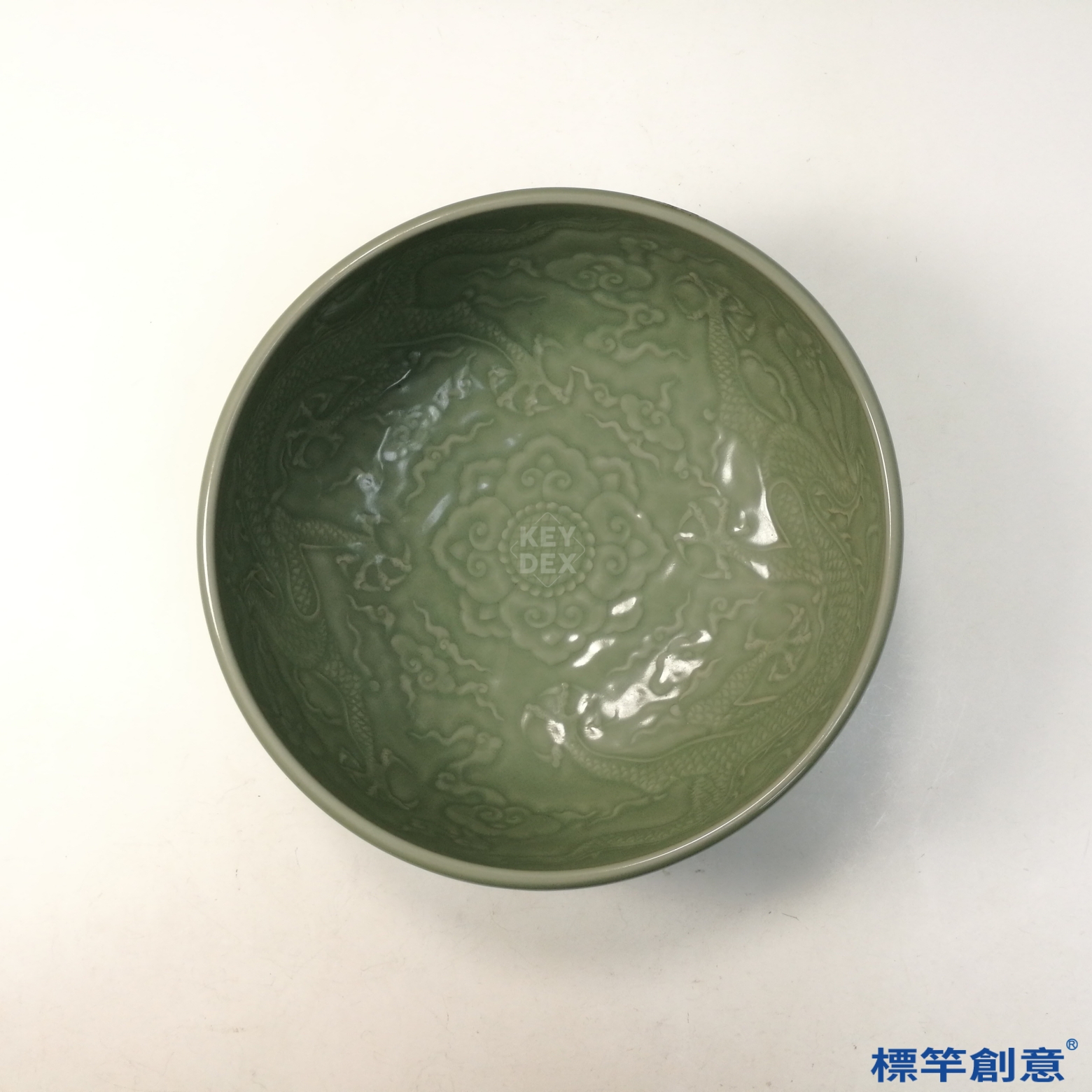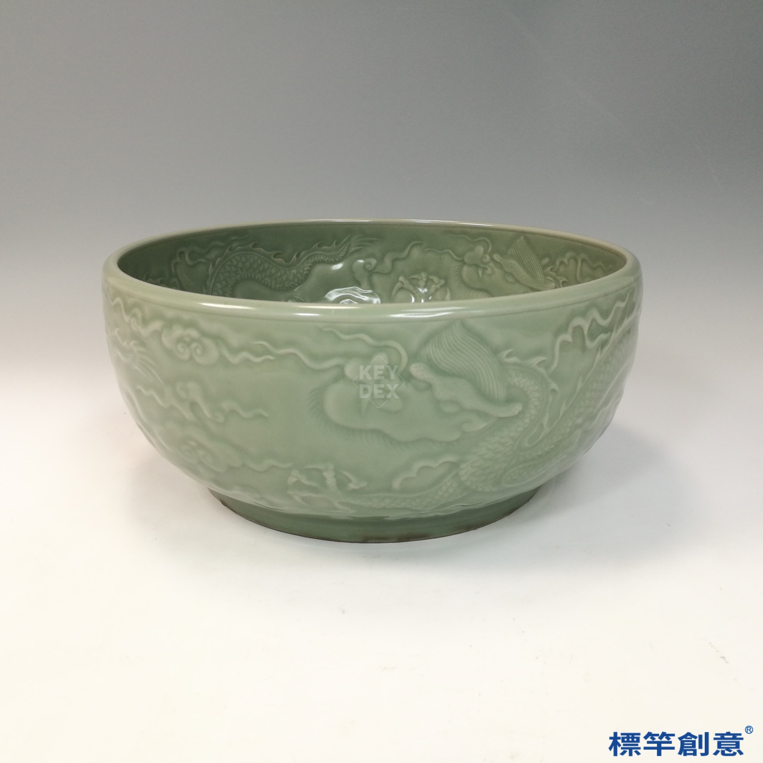 HB053 明中期龍泉窯粉青釉刻五爪龍紋宮廷用餐盆
