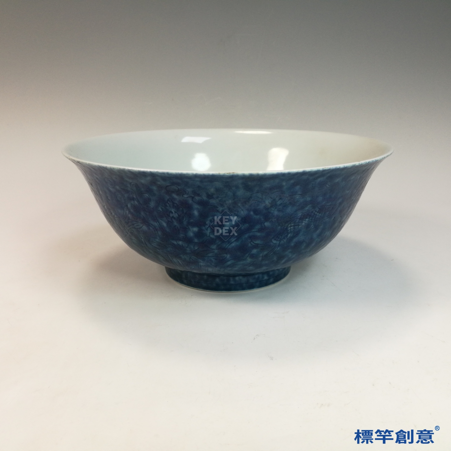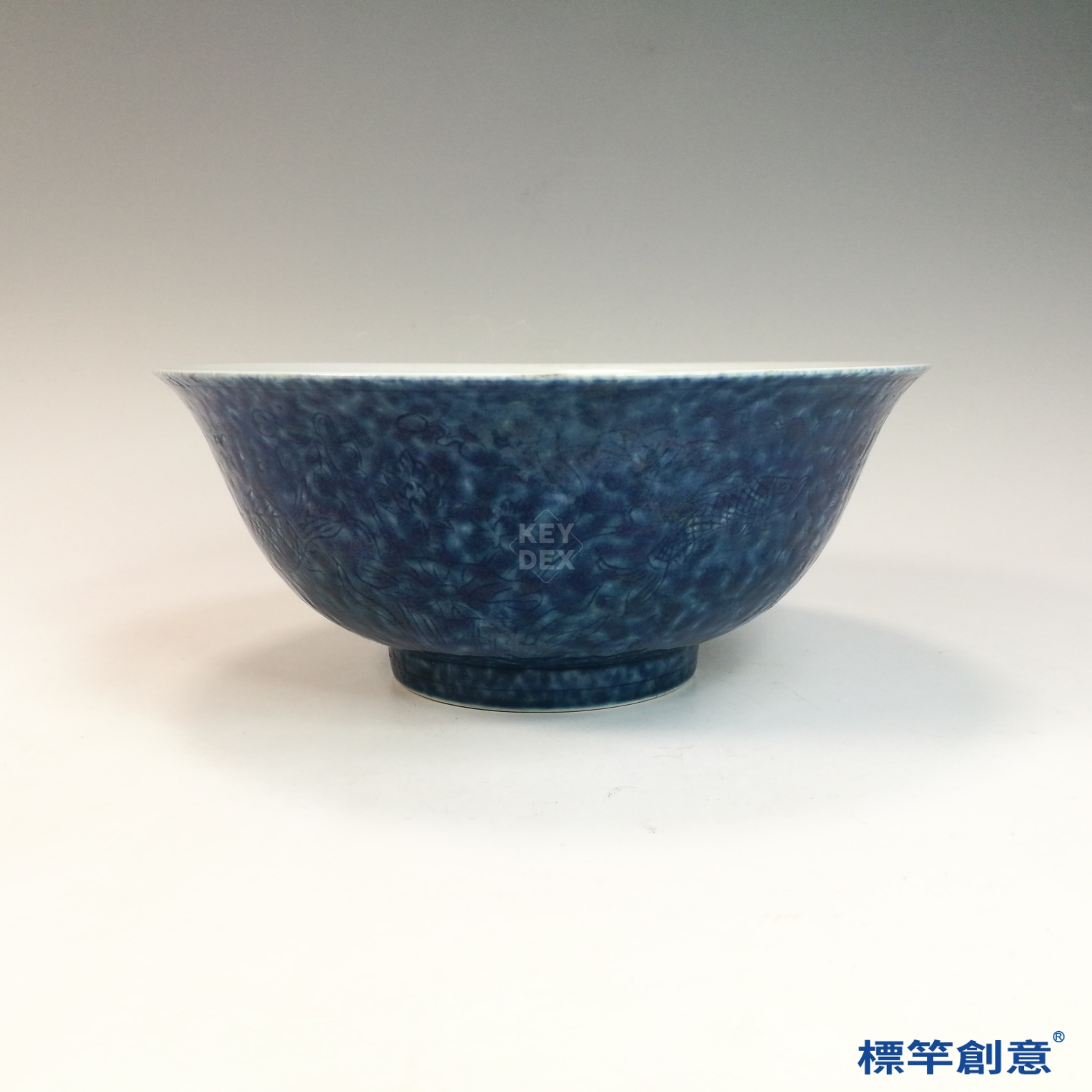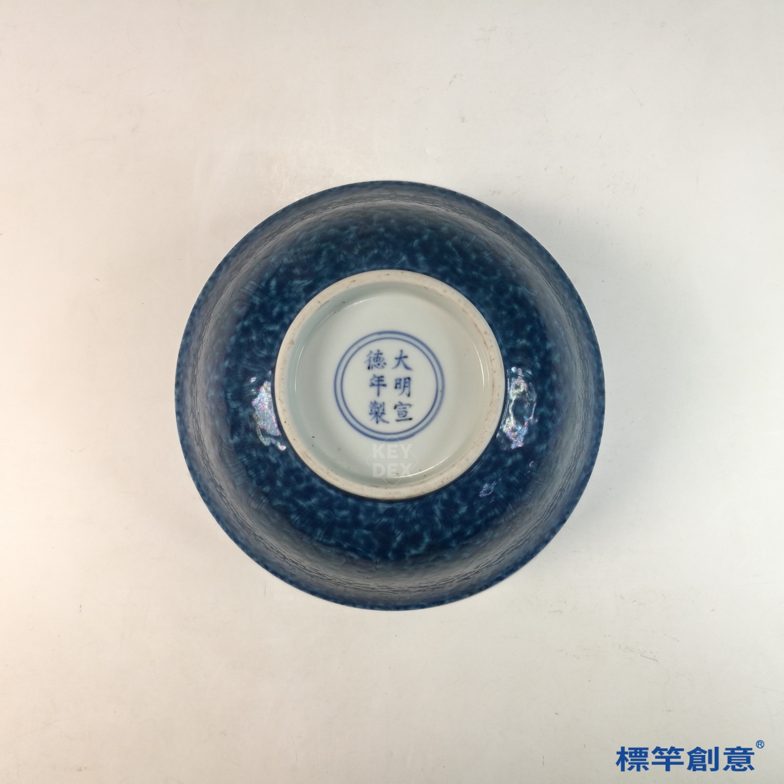 HB139 明宣德灑藍釉刻花宣德款碗