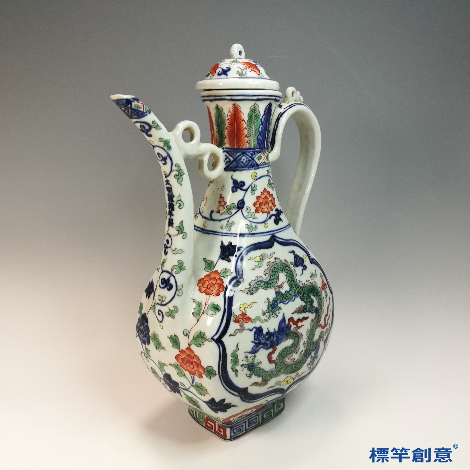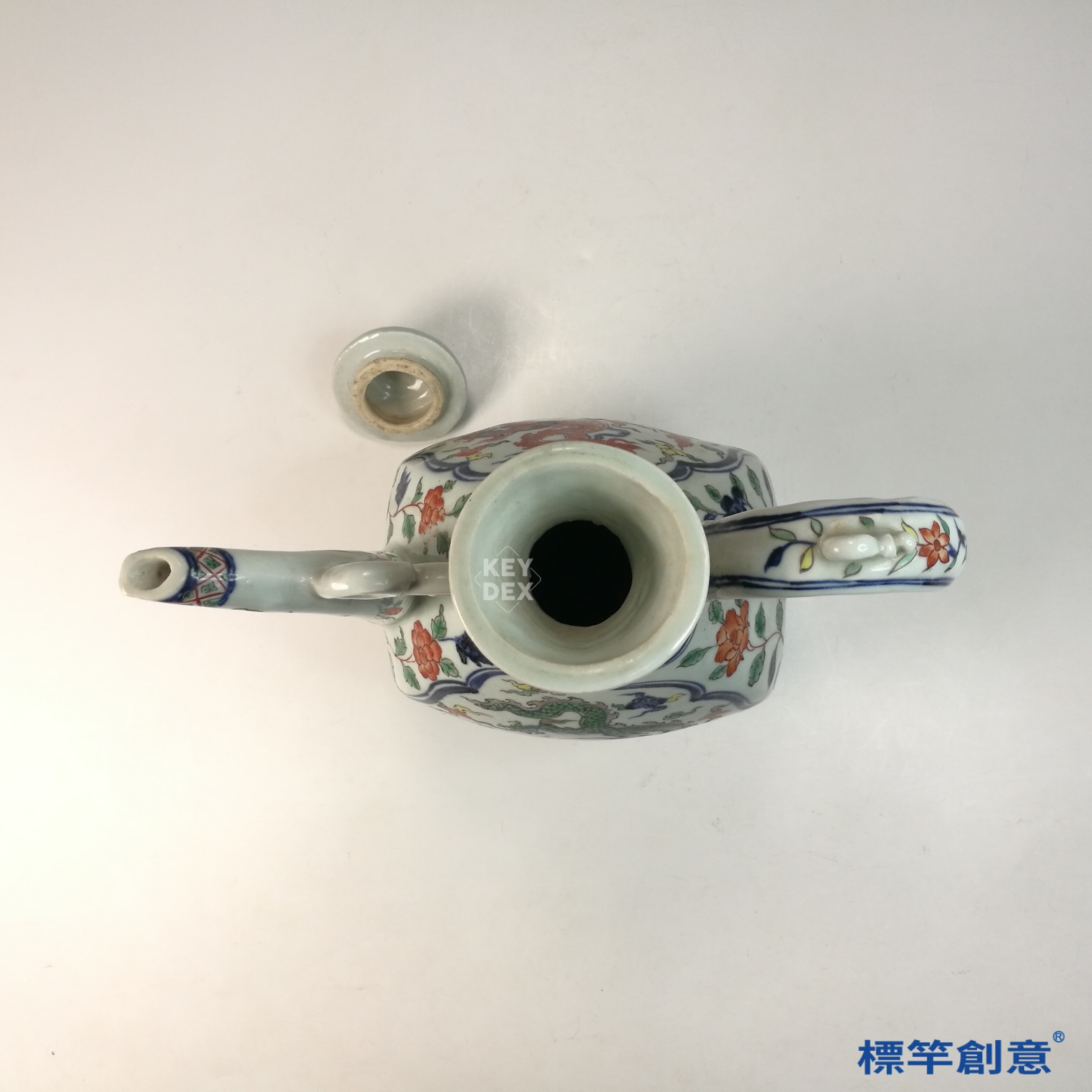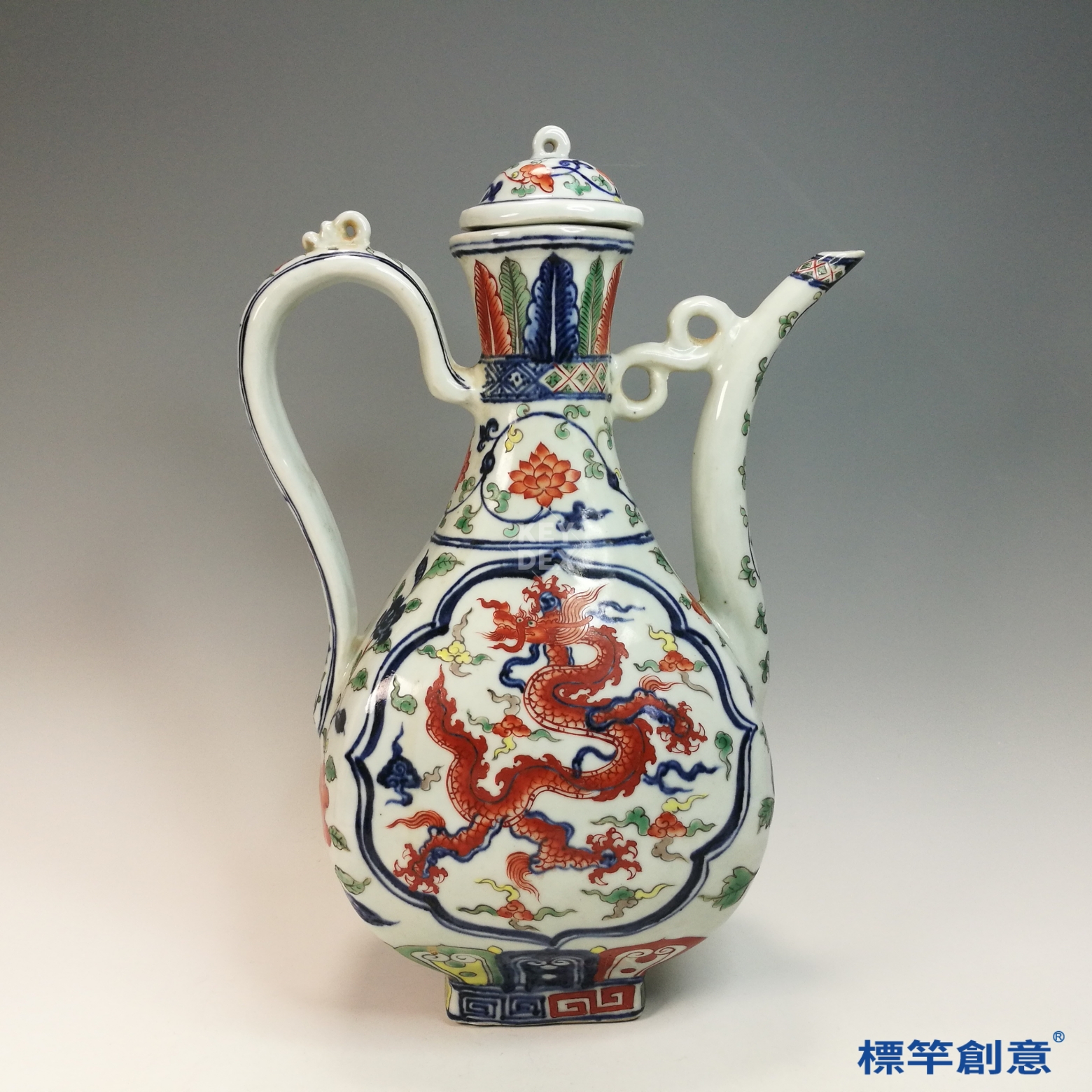 HB146 明嘉靖景德鎮民窯五彩五爪龍紋宣德款外銷執壺