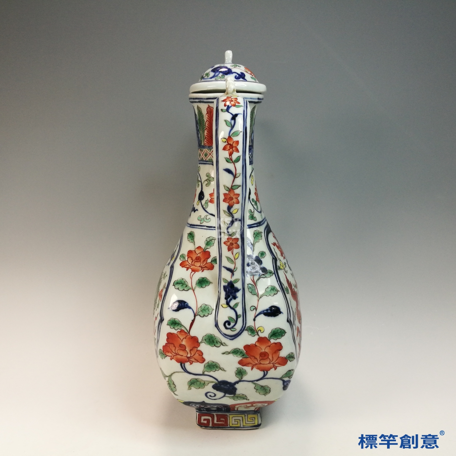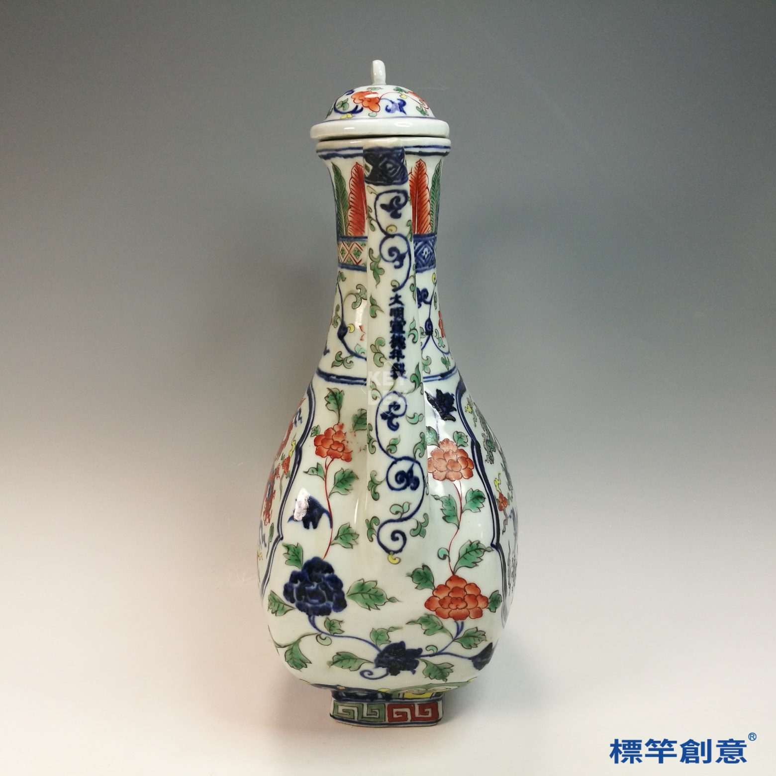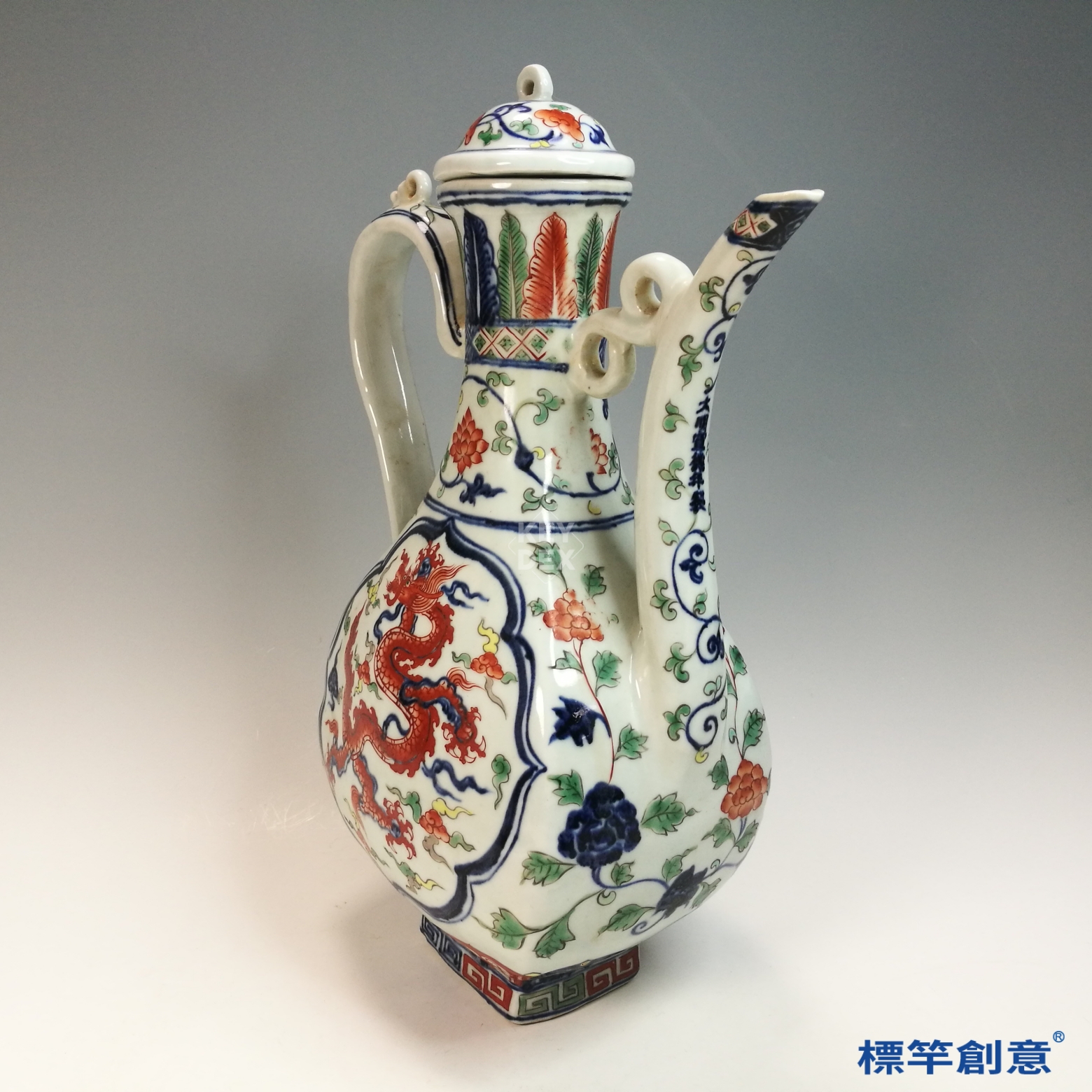 HB146 明嘉靖景德鎮民窯五彩五爪龍紋宣德款外銷執壺