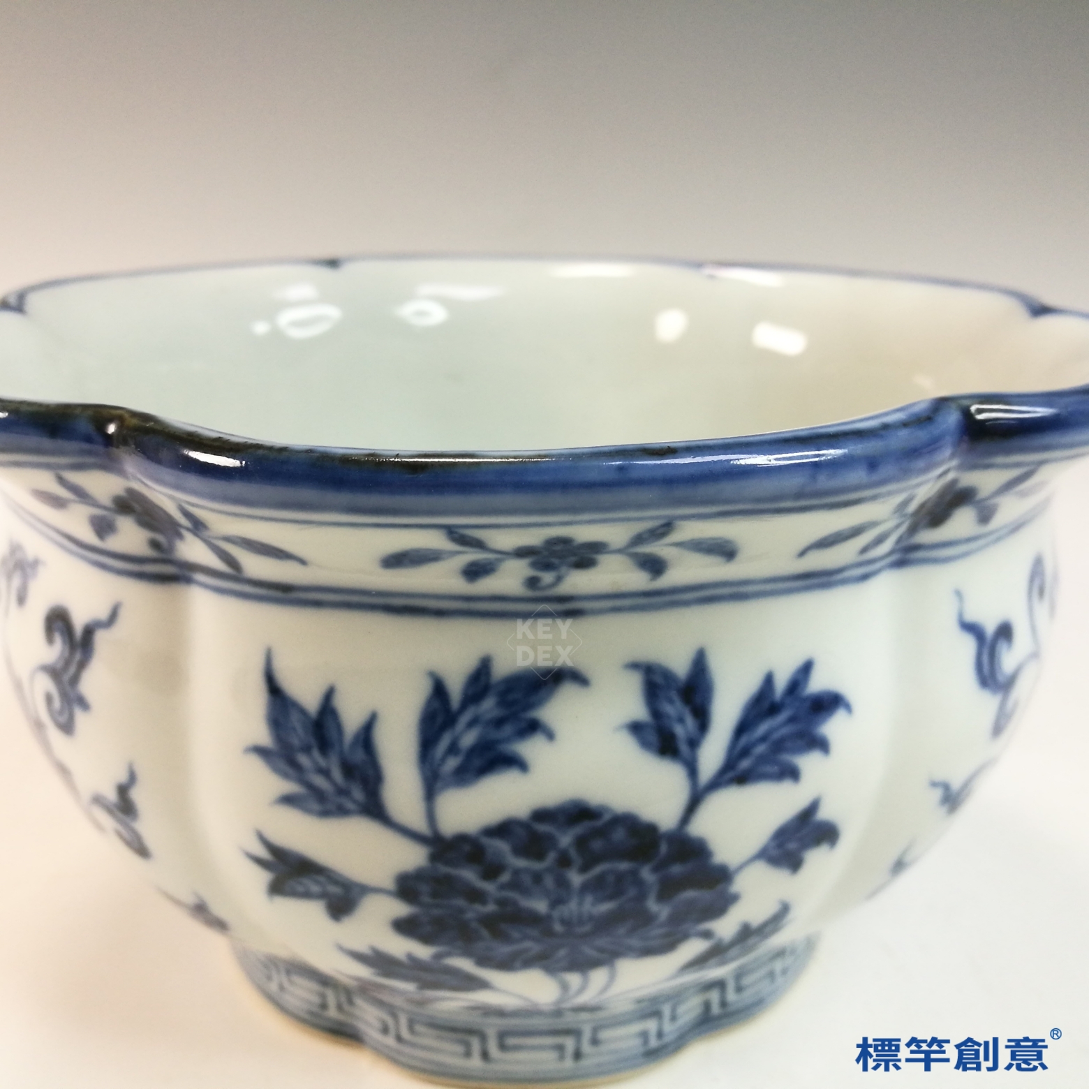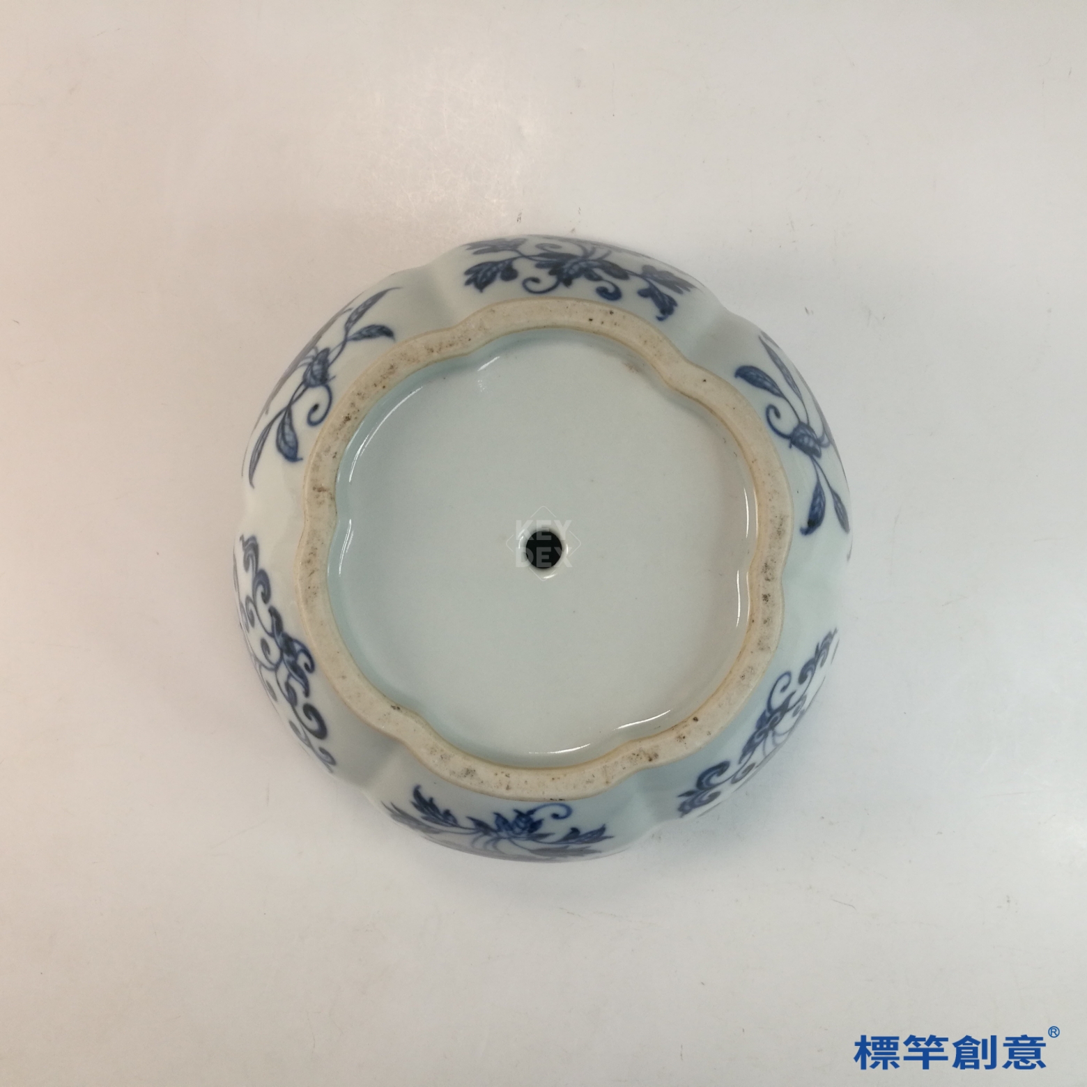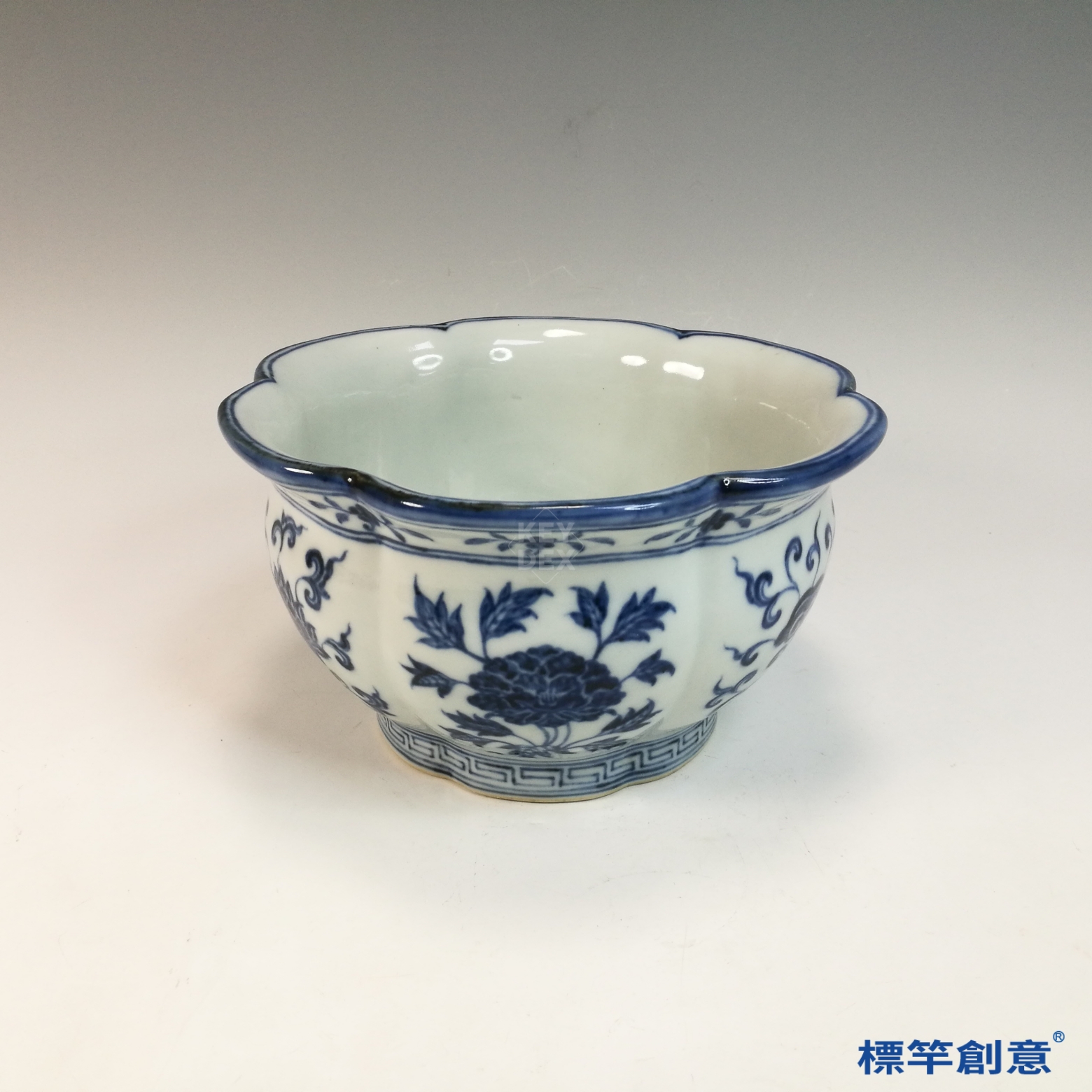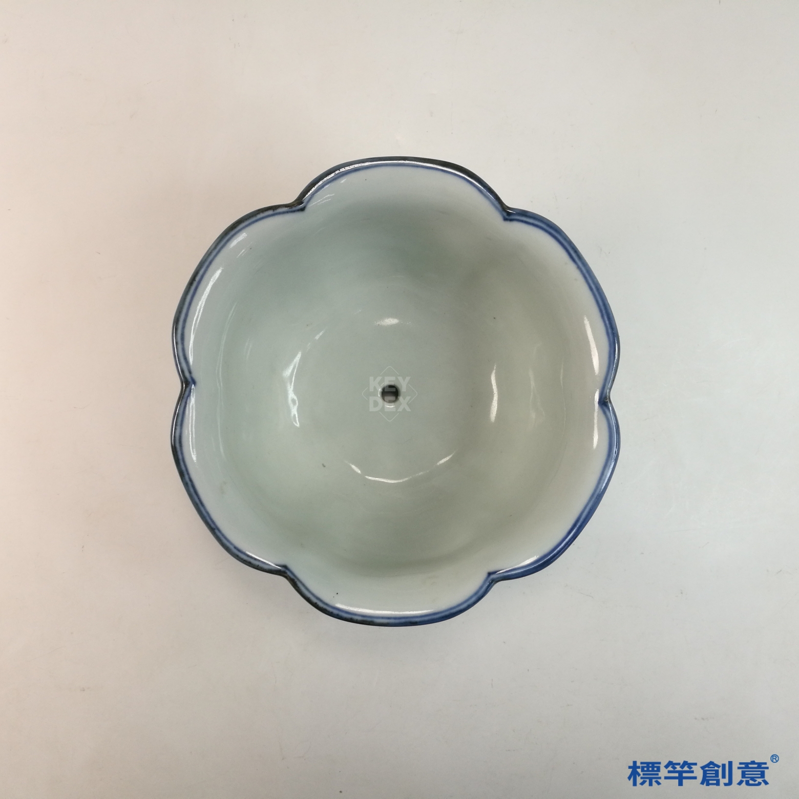 HB151 明永宣青花菊瓣花卉紋折沿花盆