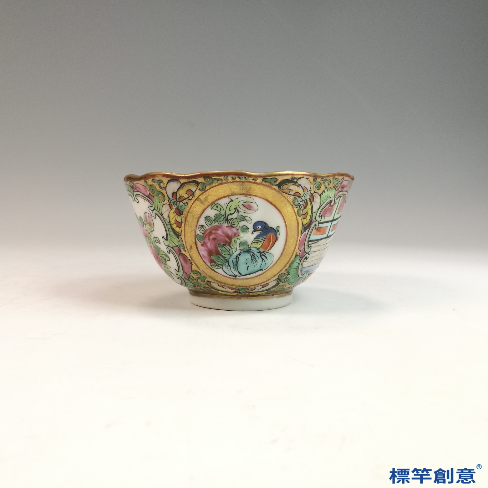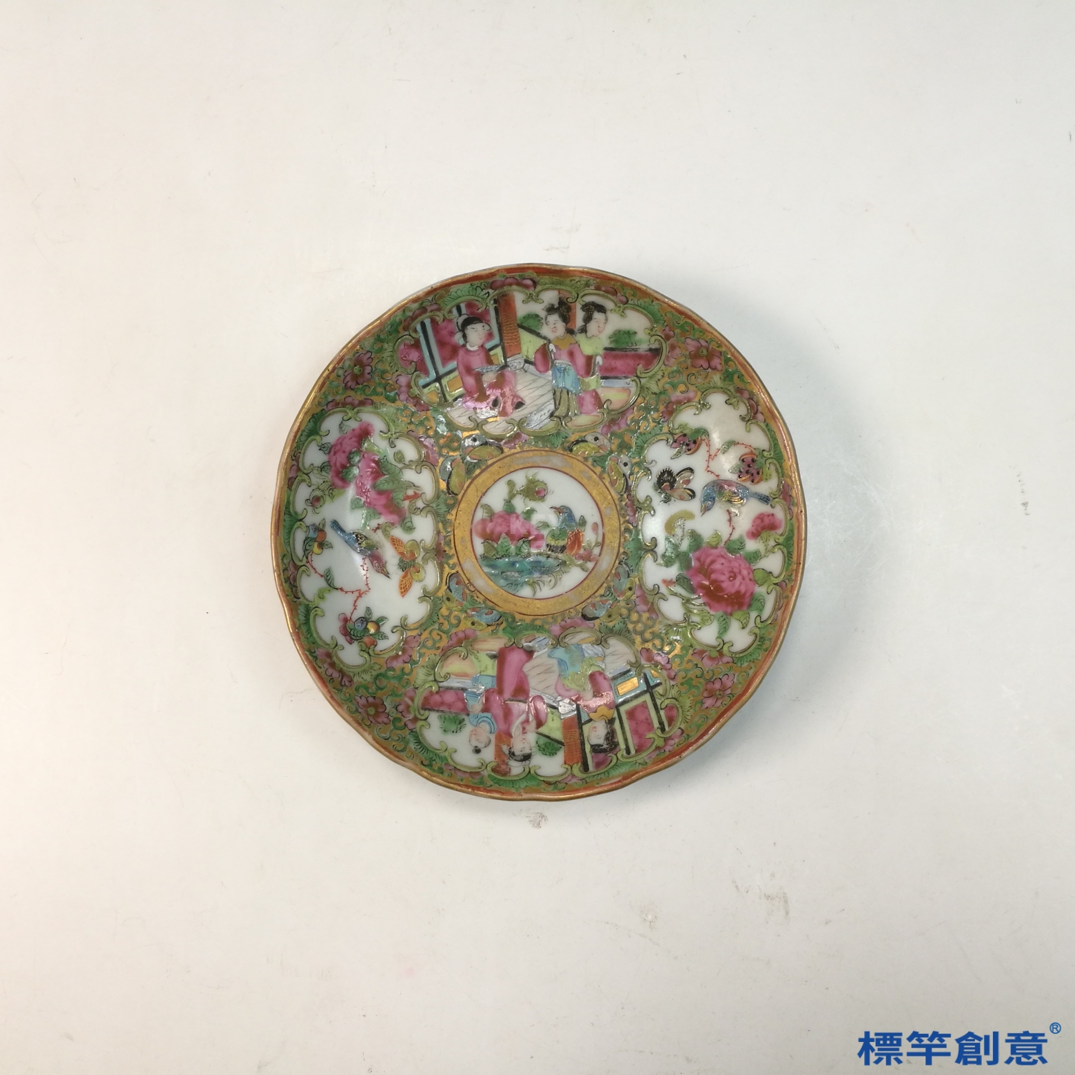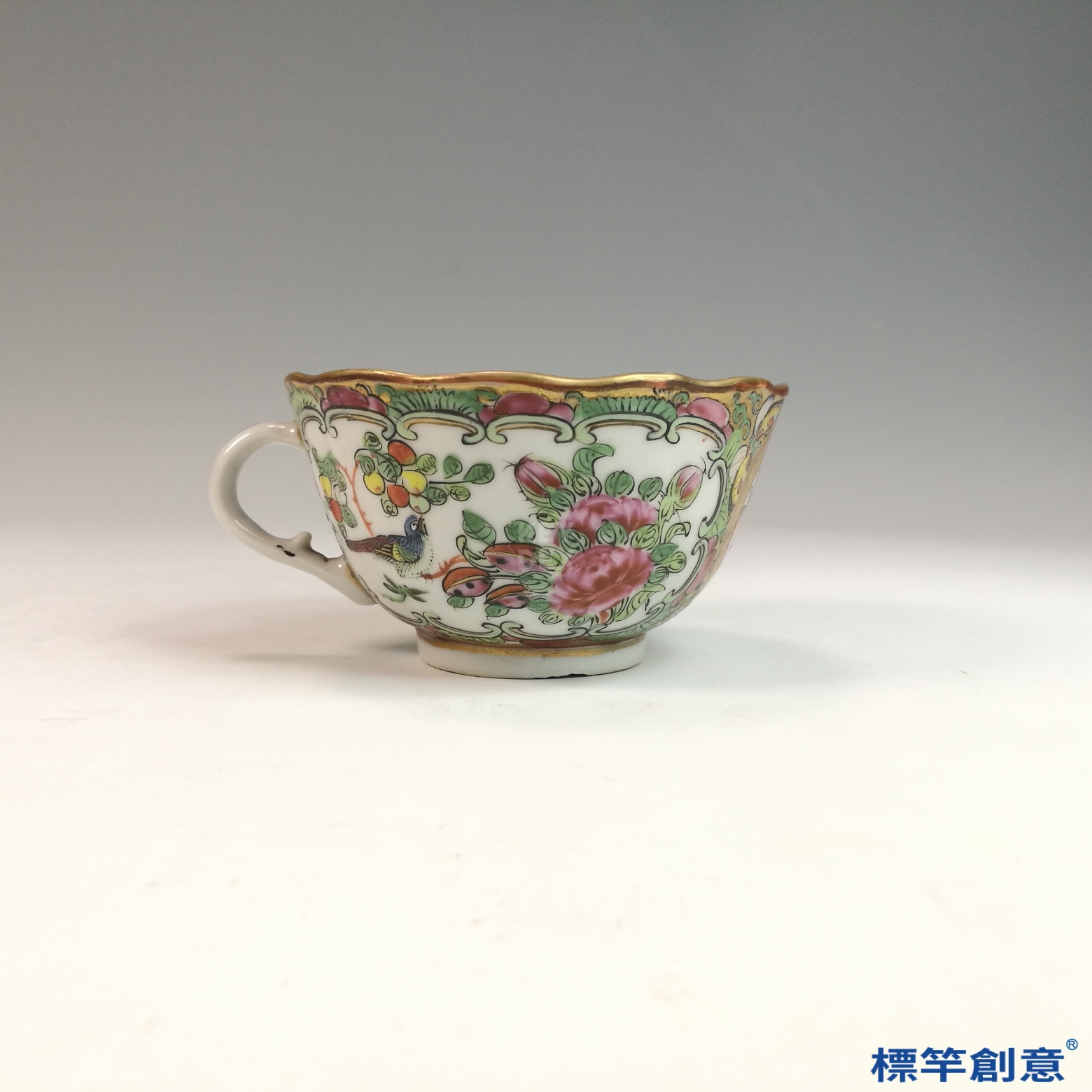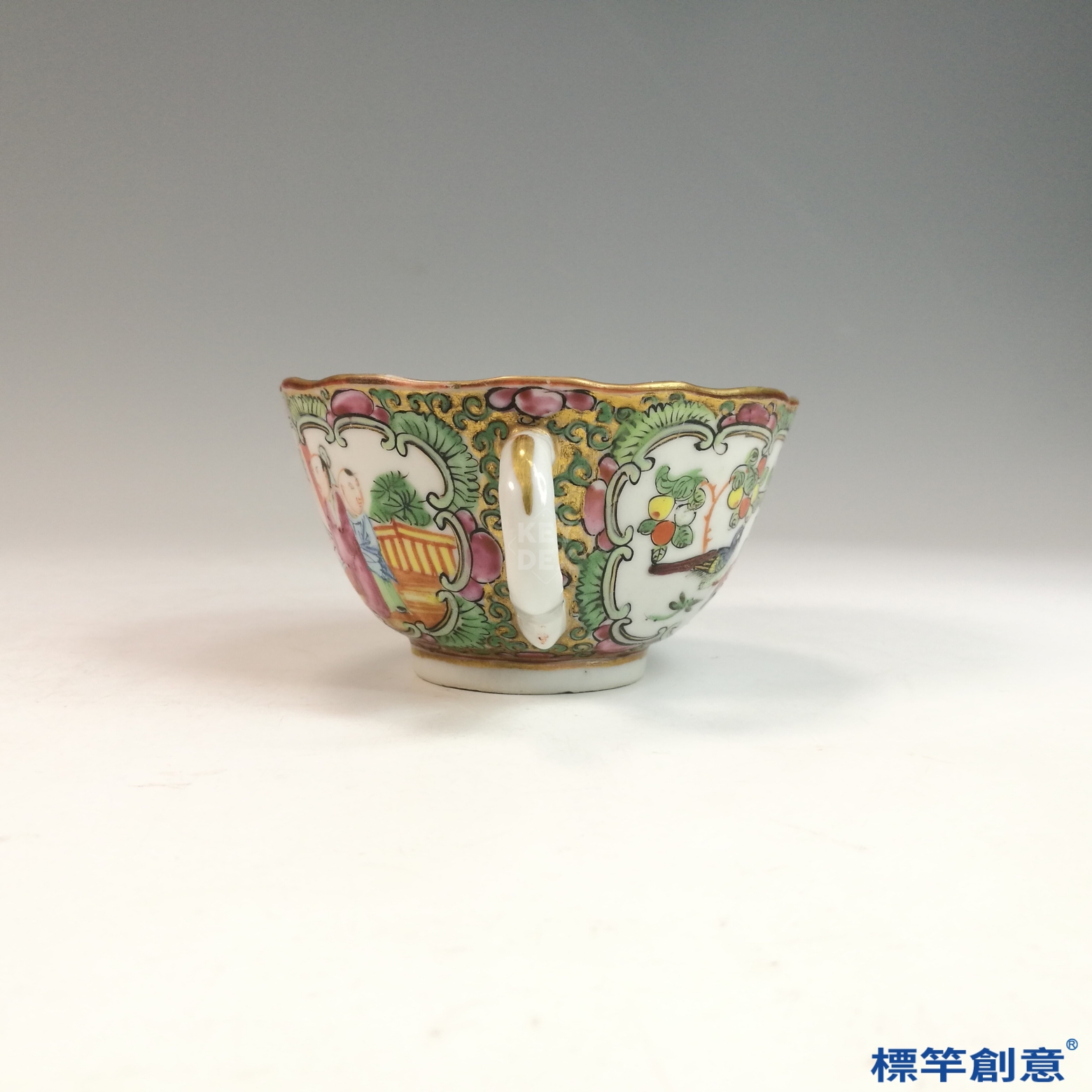 為清同治年間(公元1862–1874)廣東地區出口瓷之一,屬廣彩瓷品,應為外銷歐洲之訂製品。當時廣州作為重要外銷瓷彩繪中心,承接景德鎮白瓷坯體,在廣州施彩後出口。