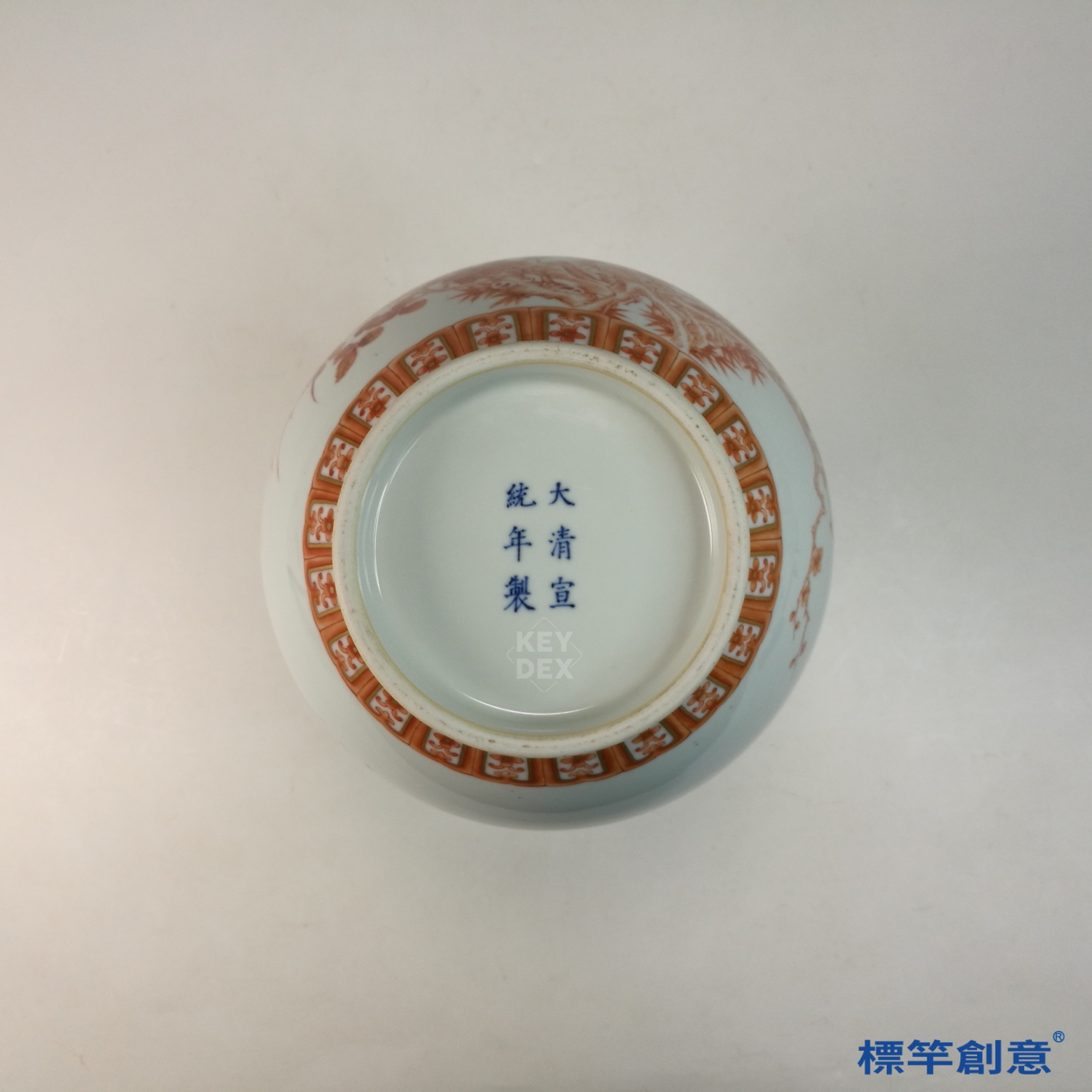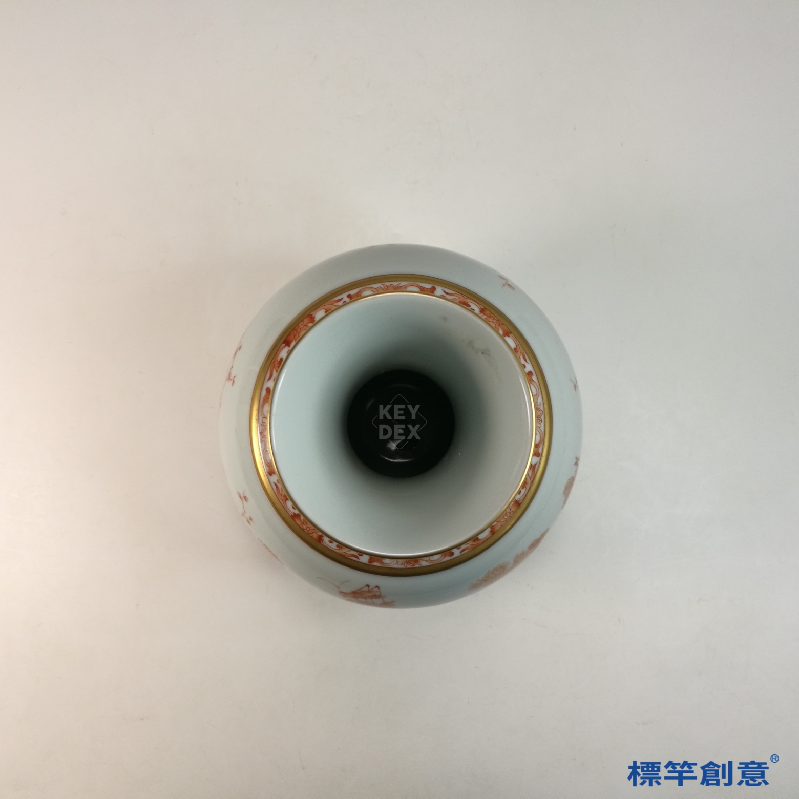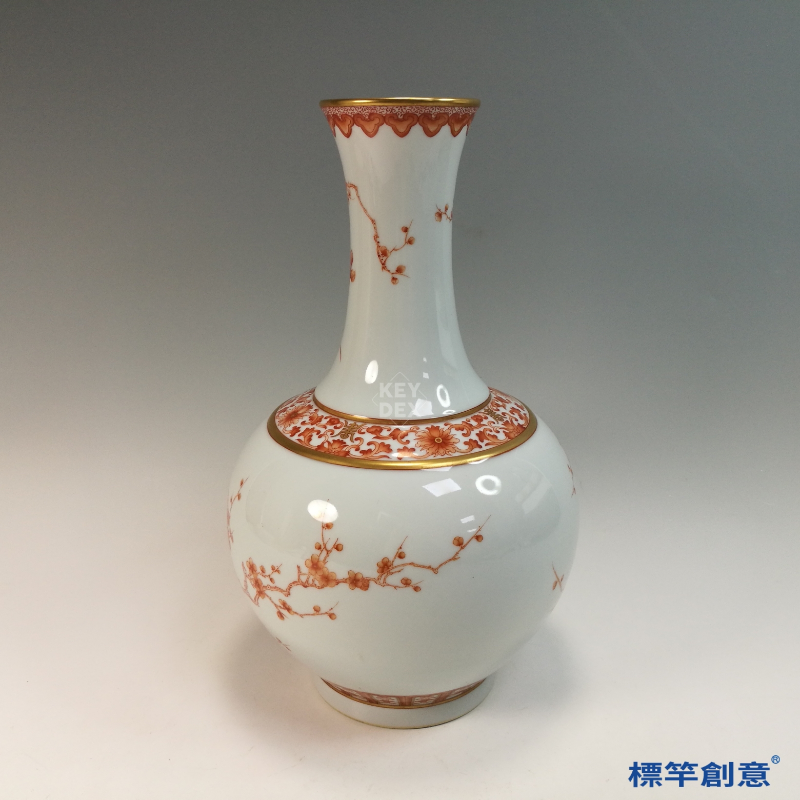 IA088 清宣統官窯礬紅彩花鳥描金賞瓶