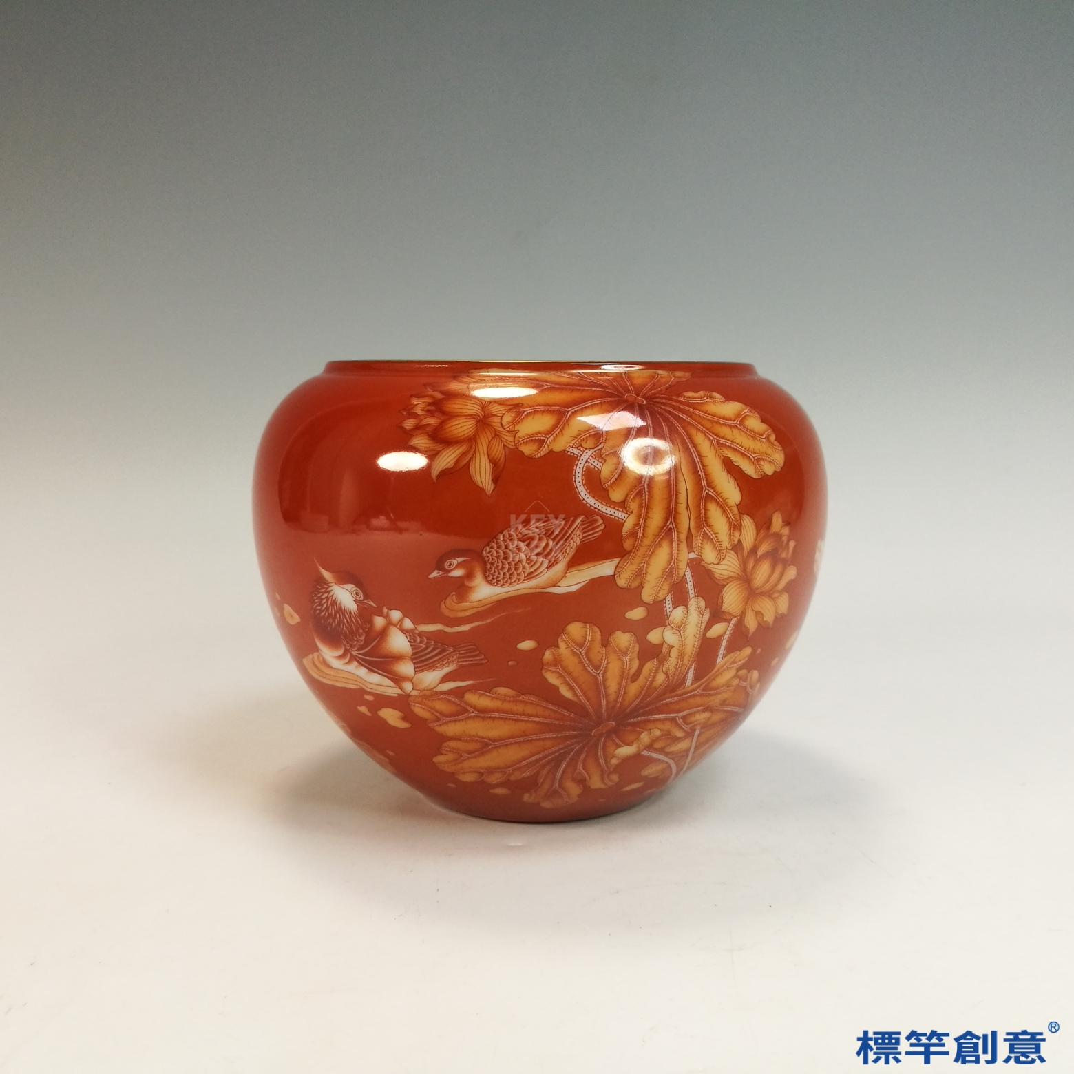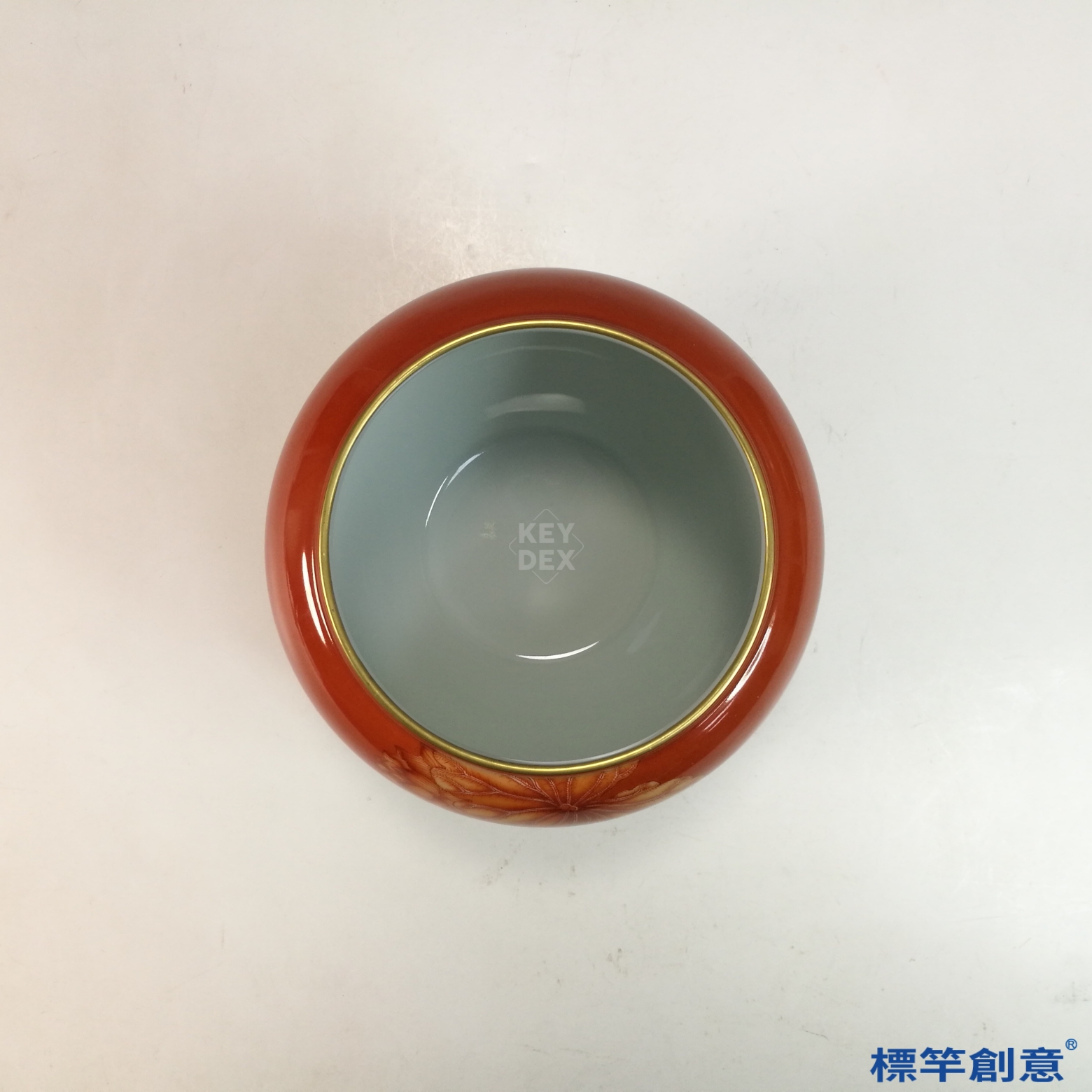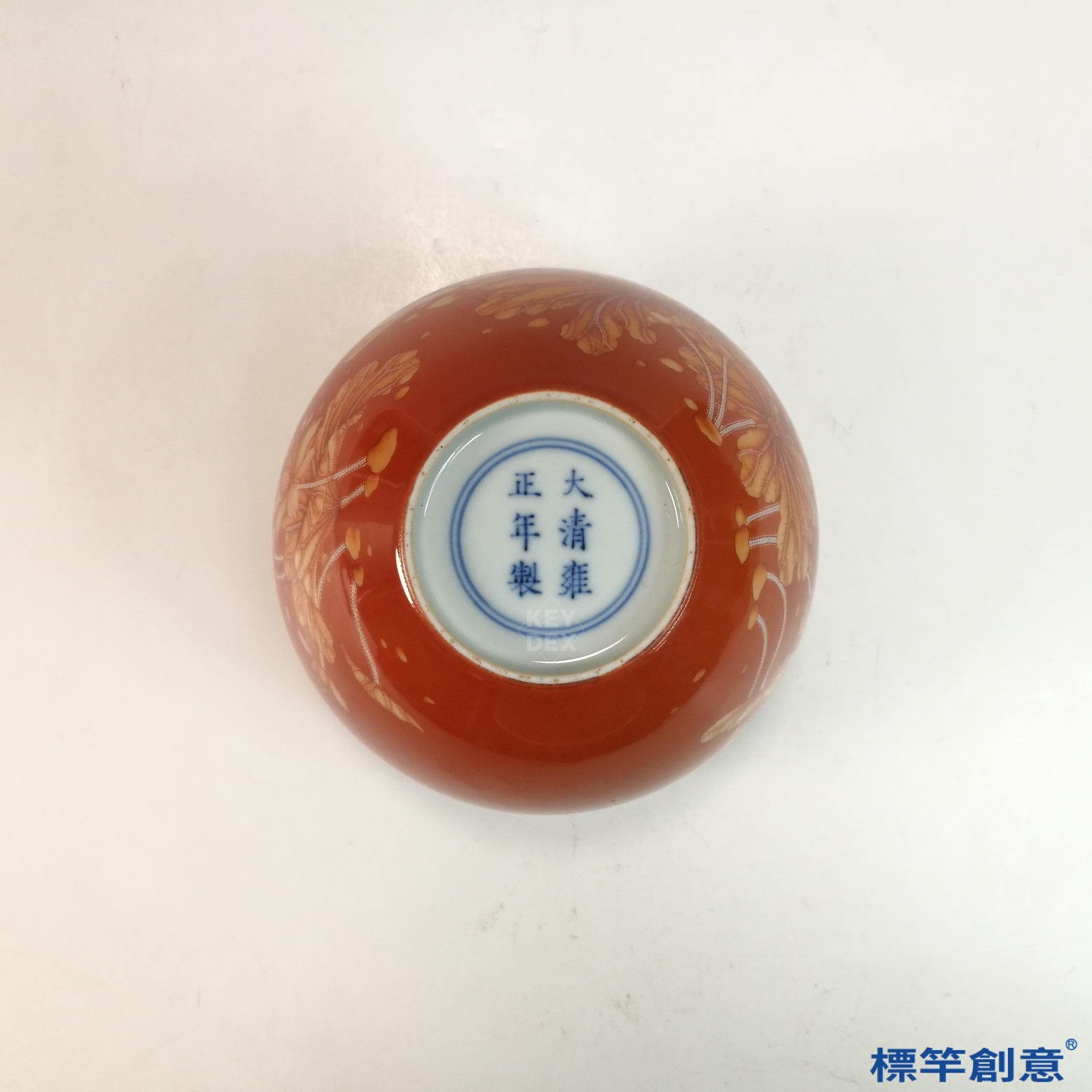 IA100 清雍正官窯礬紅釉繪蓮紋水盂